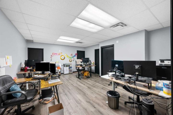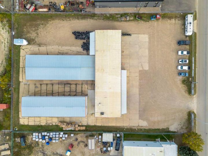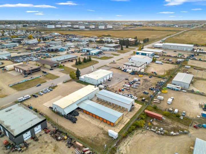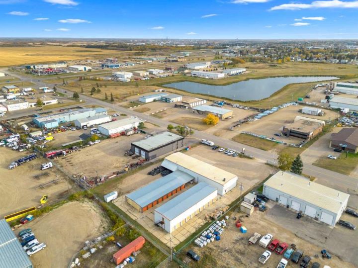 Exceptional investment opportunity featuring three buildings on site — two currently leased with solid tenants in place, and the remaining building with storage units offering great potential for future revenue. Located along high-traffic 62 Street in Lloydminster’s busy industrial park, this versatile 5,400 SF building offers storefront space, a fenced compound, and a well-equipped shop with four overhead doors (10x14, 2-14x14, 26x14), radiant heat, and a trench drain over the mezzanine area. The main floor includes reception, three offices, storage, and two washrooms. Upstairs features four additional offices, a lunchroom, and one washroom. Equipped with two A/C units, two furnaces, an HVAC system, and a 40-gallon hot water tank. Approx. 20’ building height. Excellent visibility and yard access—ideal for trades, service, or light industrial users.