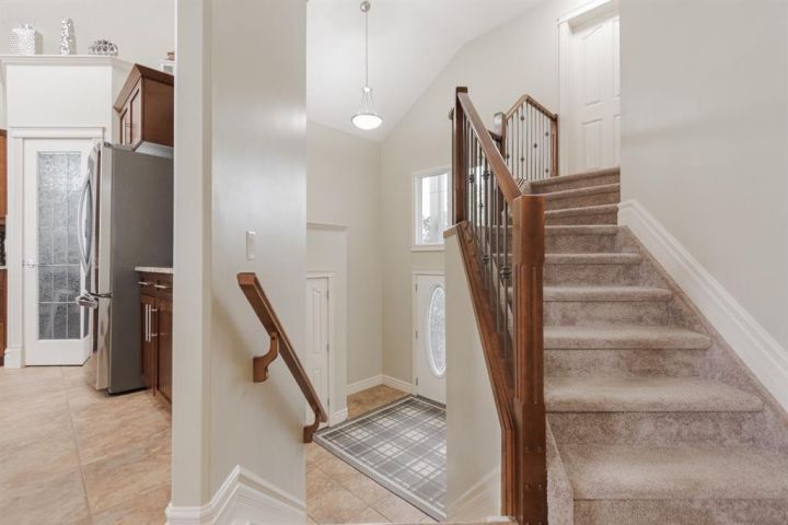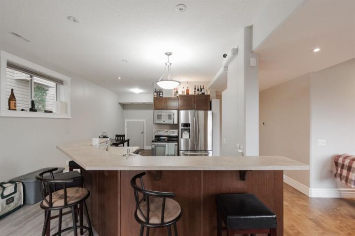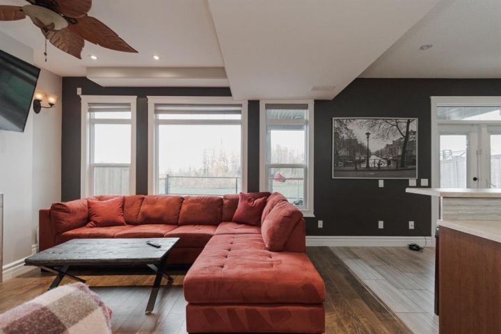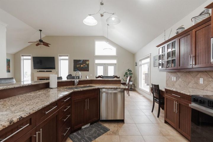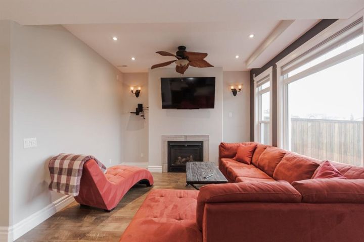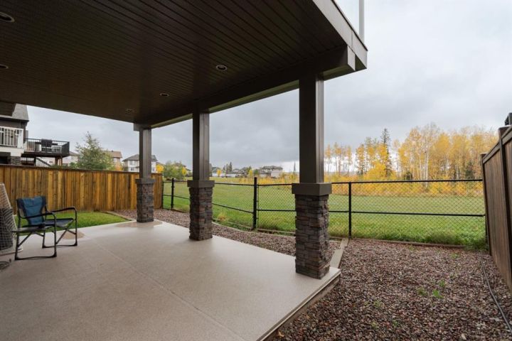Welcome to 403 Falcon Drive: a beautifully maintained modified bi-level backing onto incredible green space and amazing tree lined views with a legal walk-out basement suite and a garage that will impress. Built in 2012 and cared for by the same owner for the past six years, this home is immaculate inside and out, with no kids or pets ever living here. The curb appeal starts with an exposed aggregate driveway and attached 24x26 double car garage with 10 ft ceilings, epoxy floors, LED lighting, hot and cold taps, and plenty of included cabinetry — a dream set up for storage, hobbies or the perfect man cave. Step inside and you’re welcomed into a bright main floor with vaulted ceilings, hardwood floors, and a gas fireplace in the living room. The kitchen is timeless with granite counters, a corner pantry, built-in desk, tile flooring, and newer appliances including a fridge (2024) and a brand new stove (2025). Up-down blinds add function, and garden doors lead you to the back dura deck, newly upgraded in 2025 with a liquid rubber coating and glass railings. Complete with a gas line for your BBQ, the deck overlooks the fully fenced yard and beautiful green space and walking trails behind, one of the most beautiful views in Fort McMurray. The main level offers two bedrooms with immaculate carpet, plus a full bathroom that sits in-between. Up a short flight of stairs, the private and very spacious primary suite awaits with a walk-in closet and ensuite. Downstairs, the walk-out basement is bright, spacious and very impressive featuring a legal suite with high ceilings, an abundance of natural light, tile and luxury vinyl plank flooring, and a Napoleon fireplace that adds warmth and style. The kitchen offers a large eat-up island, stainless steel appliances (fridge 6 years old), and plenty of storage. A full bathroom with a jetted tub and in-suite laundry complete the space, making it ideal for rental income or extended family. Additional features include central A/C, in-floor heat in both the basement and garage and an HRV system. Back outside, the yard is a mix of grass and rock landscaping with direct access to the greenbelt behind - the perfect blend of low maintenance and natural beauty. 403 Falcon Drive is move-in ready and offers comfort, function, and income potential all in one. Schedule your private tour today.