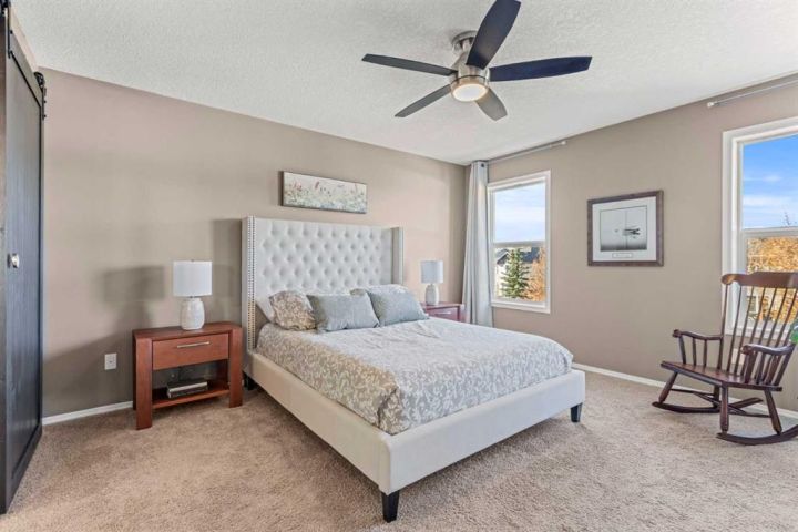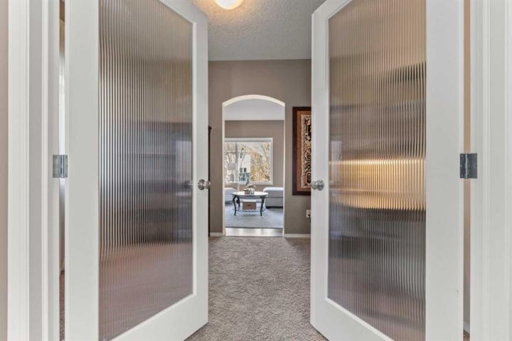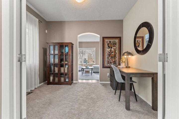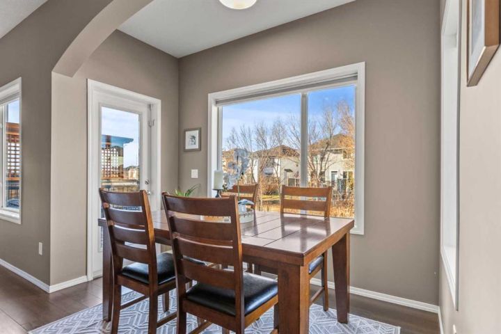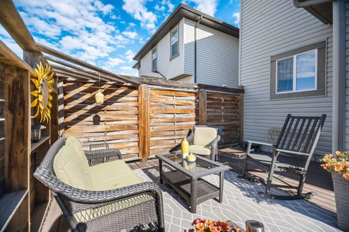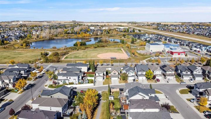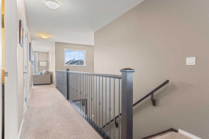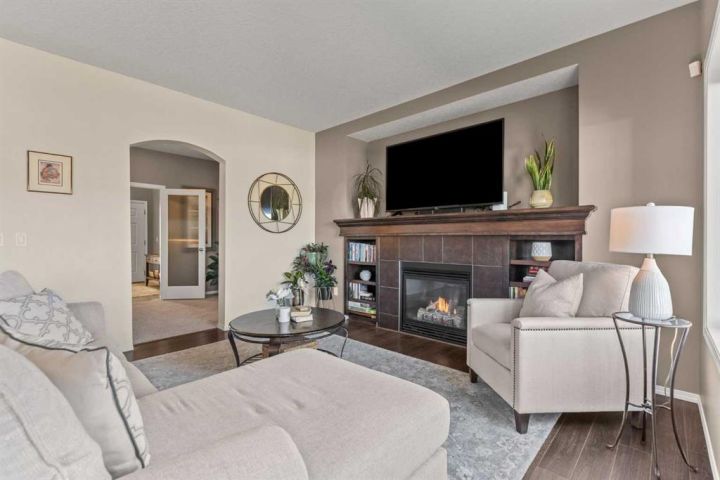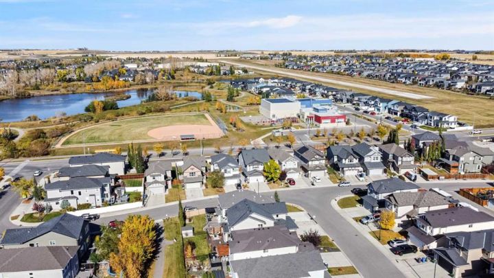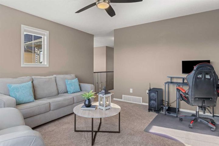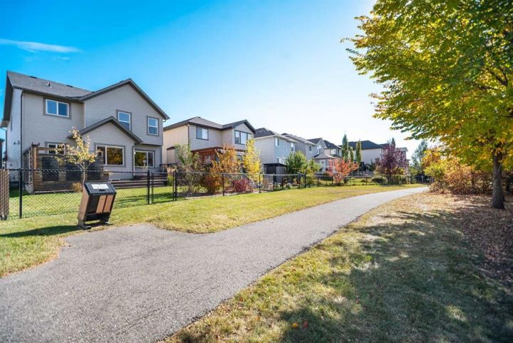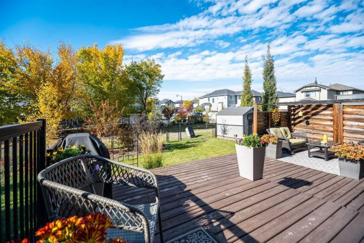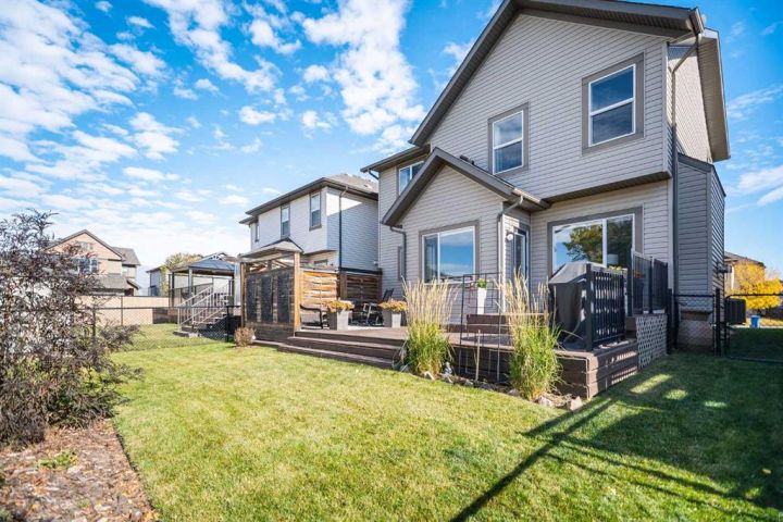 Welcome to this beautifully maintained 2,207 sq ft two-storey in the highly sought-after community of Drake Landing. Perfectly positioned on a quiet street with a west-facing backyard backing onto a scenic walking path, this home offers an exceptional blend of elegance, comfort, and functionality. Step inside the grand two-storey foyer, where soaring ceilings and a wrought-iron staircase immediately make an impression. Overlooking the entryway, the open upper hallway—also wrapped in wrought iron—adds architectural drama and a sense of spaciousness. Just off the foyer, French doors open to a bright and versatile flex room, perfect for a home office, den, or library. The open-concept main floor features a spacious living area centered around a gas fireplace flanked by custom built-ins. The kitchen is designed for both beauty and practicality, with a large central island, stainless steel appliances, extended cabinetry, and a walkthrough pantry that leads directly into a well-appointed mudroom/laundry room—complete with a built-in bench and coat hooks for effortless everyday organization. The adjoining dining area opens onto the west-facing deck, ideal for evening barbecues and summer sunsets. Upstairs, you’ll find a generous bonus room, three comfortable bedrooms, and a primary suite that feels like a retreat, featuring a walk-in closet and a 5-piece ensuite with dual sinks, a deep soaker tub, and a separate shower. The unfinished basement offers endless potential for future development, while the fully fenced backyard provides privacy, sunshine, and direct access to the walking path. Located close to schools, parks, and north-end Okotoks amenities, this home is a perfect balance of style, space, and convenience—ideal for families who appreciate thoughtful design and quality craftsmanship.