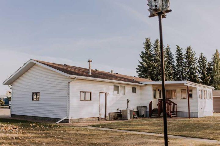 Nestled in a quiet cul-de-sac in the welcoming community of Wainwright, this charming 1974 bungalow has been lovingly lived in and meticulously cared for by the same family for over 50 years. Set on an oversized lot that backs onto a serene walking trail, the property offers mature trees, space, and a strong sense of home. A single attached garage is complemented by a powered detached garage in the back, perfect for extra storage, a workshop, or hobby space. Inside, the home has seen numerous thoughtful updates over the years, including the addition of a sun-filled solarium, custom kitchen cupboards and countertops, updated flooring and paint, new shingles and eaves troughing, air conditioning, and most windows replaced for efficiency and comfort. The main floor bathroom is generously sized and designed with accessibility in mind, offering both convenience and future peace of mind. Downstairs, the finished basement features new flooring, fresh paint, updated trim, and ample space for recreation, family gatherings, or relaxing evenings by the dry bar. This is more than just a house—it’s a legacy of care, warmth, and timeless comfort.