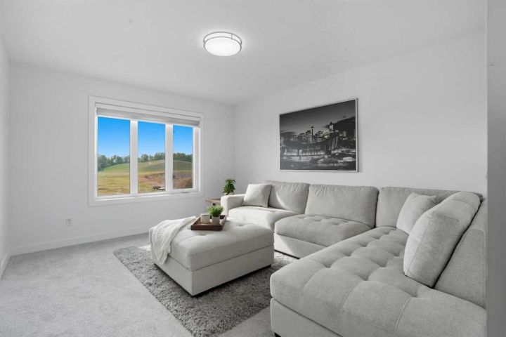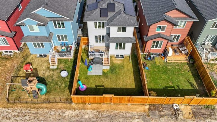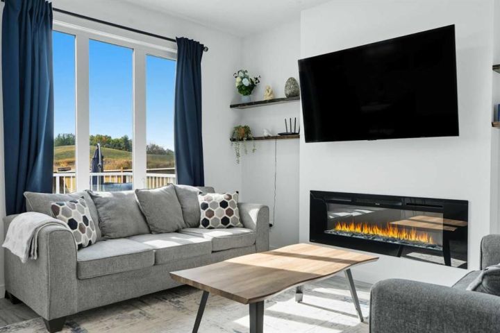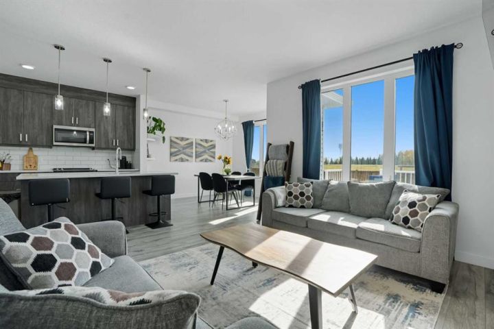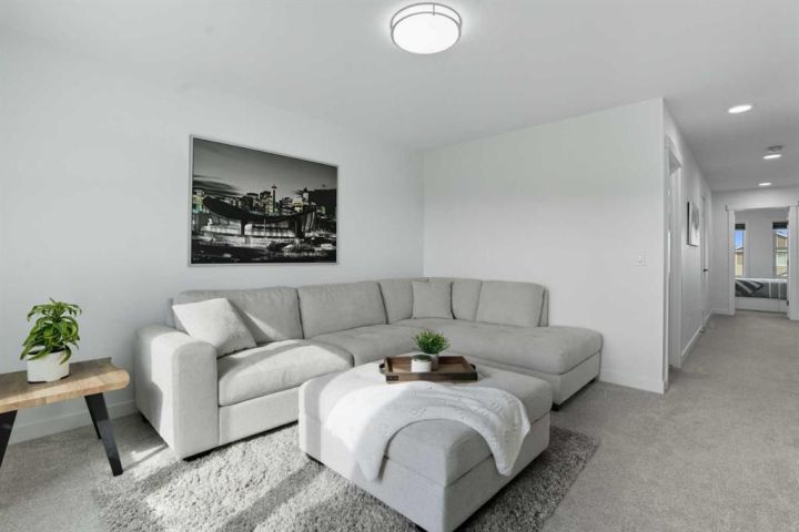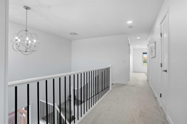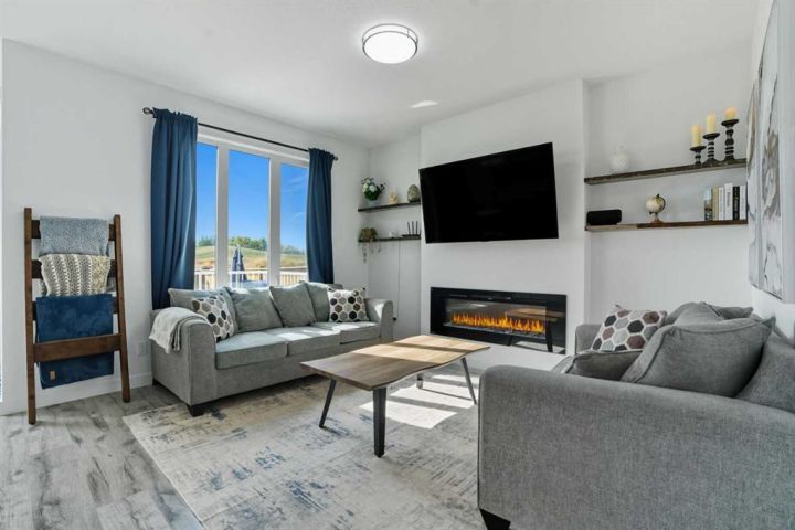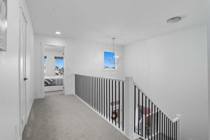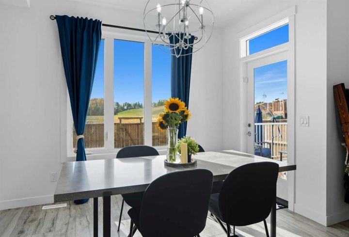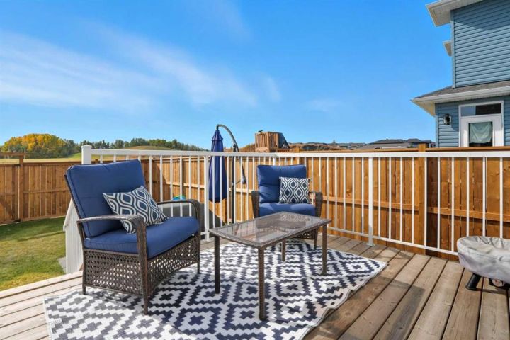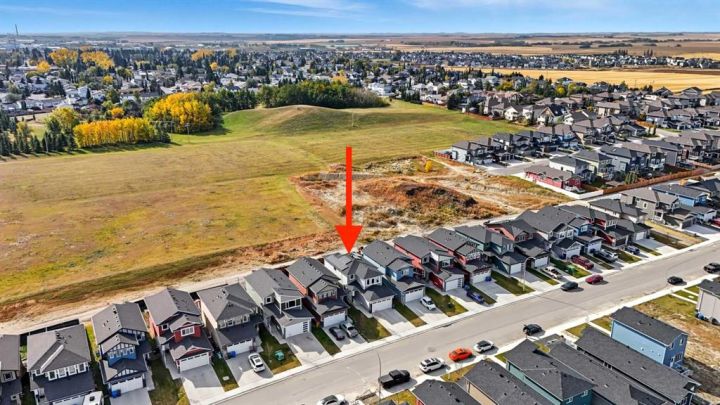 Welcome to 1037 Iron Landing Way – a modern two-storey home in the desirable community of Iron Landing, Crossfield, AB. Boasting 1,893 sq ft of thoughtfully designed above-grade living space, with a double attached garage, this home checks all the boxes! The main floor features impressive 9 ft ceilings, 8 ft doors, and large south-facing windows that create a bright, open, and airy feel. Enjoy the conveniences of a main floor den and laundry room, a chef-inspired kitchen (complete with quartz countertops, stainless steel appliances, a large corner pantry), spacious living room with electric fireplace, and dining room with direct access to the deck in the fully fenced, fully landscaped, sun-drenched backyard. Upstairs, you’ll find three spacious bedrooms (including a well-appointed primary suite with spa-inspired ensuite and walk-in closet), two full bathrooms, and expansive bonus room. The unfinished basement (829 sq ft) showcases a separate side entrance, 9 ft ceilings, and rough-ins for a future bathroom, making it perfect for future development. SUBSTANTIAL RECENT UPGRADES here also include: new solar panels, new central air conditioning, new water softener system, and new window treatment package! Located in a quiet, family-friendly neighbourhood, this move-in-ready home truly has it all. Don’t miss out, call now!