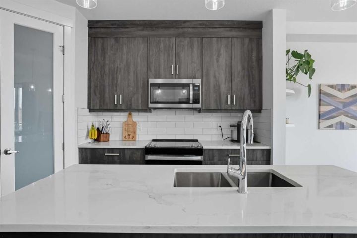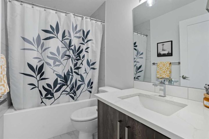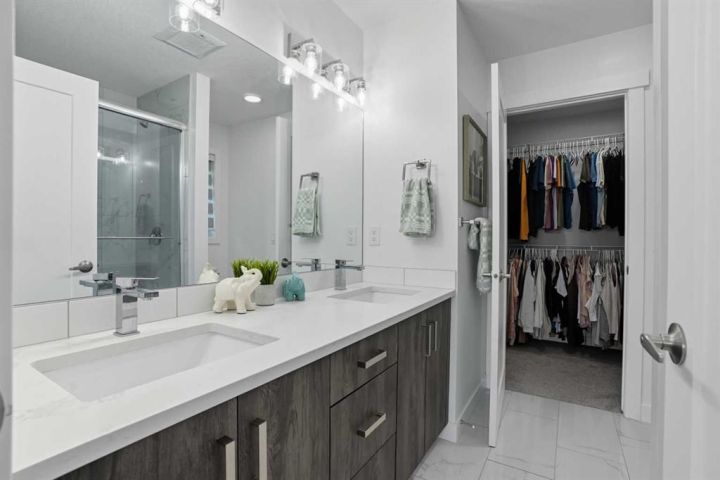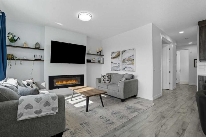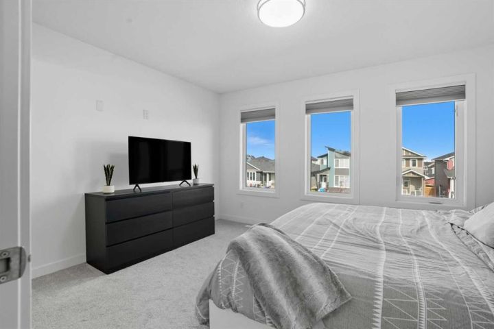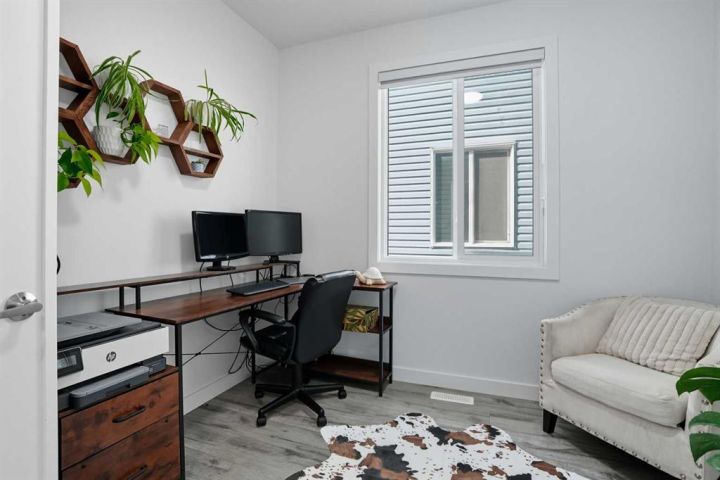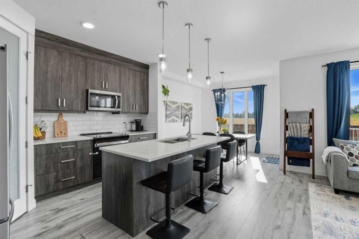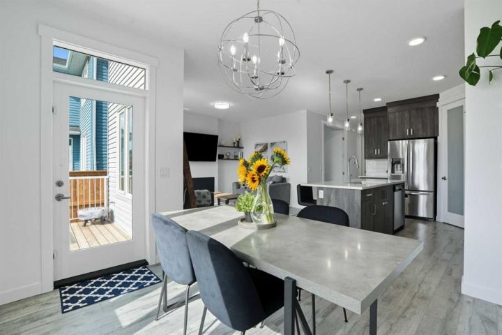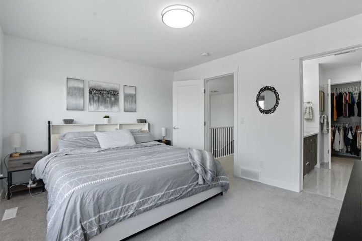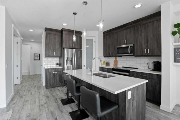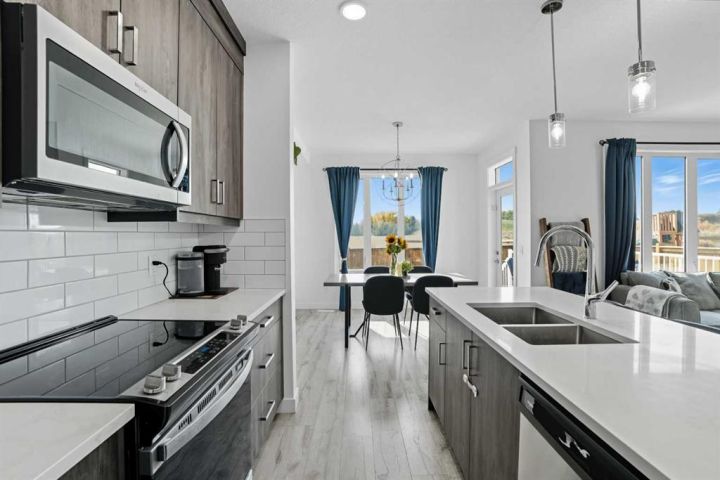 Welcome to 1037 Iron Landing Way – a modern two-storey home in the desirable community of Iron Landing, Crossfield, AB. Boasting 1,893 sq ft of thoughtfully designed above-grade living space, with a double attached garage, this home checks all the boxes! The main floor features impressive 9 ft ceilings, 8 ft doors, and large south-facing windows that create a bright, open, and airy feel. Enjoy the conveniences of a main floor den and laundry room, a chef-inspired kitchen (complete with quartz countertops, stainless steel appliances, a large corner pantry), spacious living room with electric fireplace, and dining room with direct access to the deck in the fully fenced, fully landscaped, sun-drenched backyard. Upstairs, you’ll find three spacious bedrooms (including a well-appointed primary suite with spa-inspired ensuite and walk-in closet), two full bathrooms, and expansive bonus room. The unfinished basement (829 sq ft) showcases a separate side entrance, 9 ft ceilings, and rough-ins for a future bathroom, making it perfect for future development. SUBSTANTIAL RECENT UPGRADES here also include: new solar panels, new central air conditioning, new water softener system, and new window treatment package! Located in a quiet, family-friendly neighbourhood, this move-in-ready home truly has it all. Don’t miss out, call now!