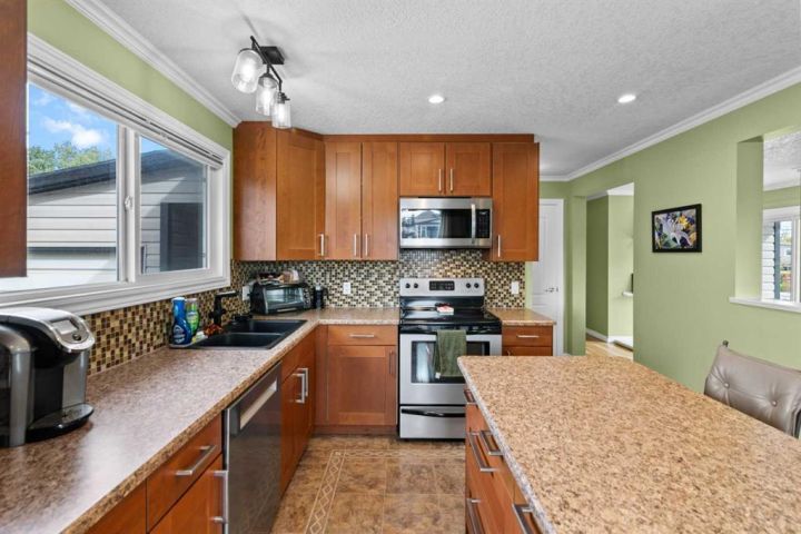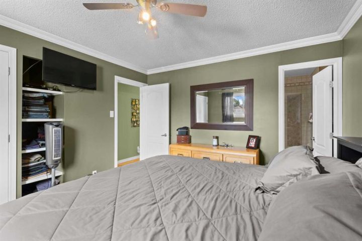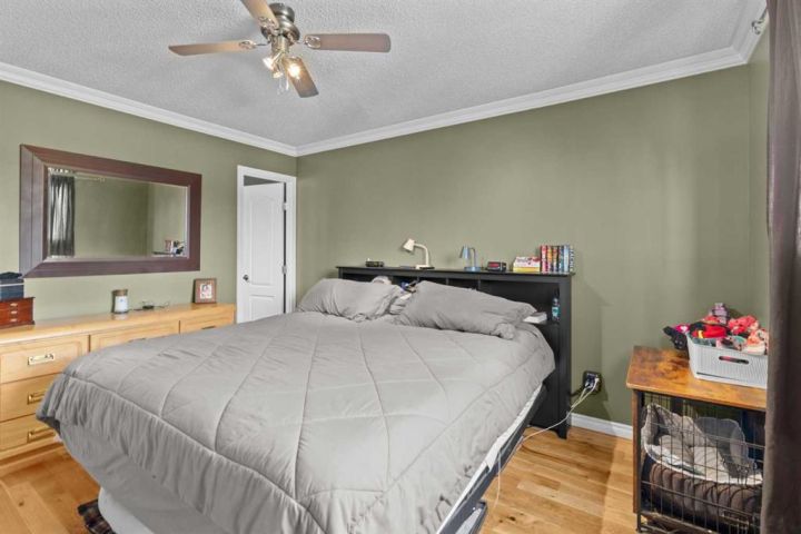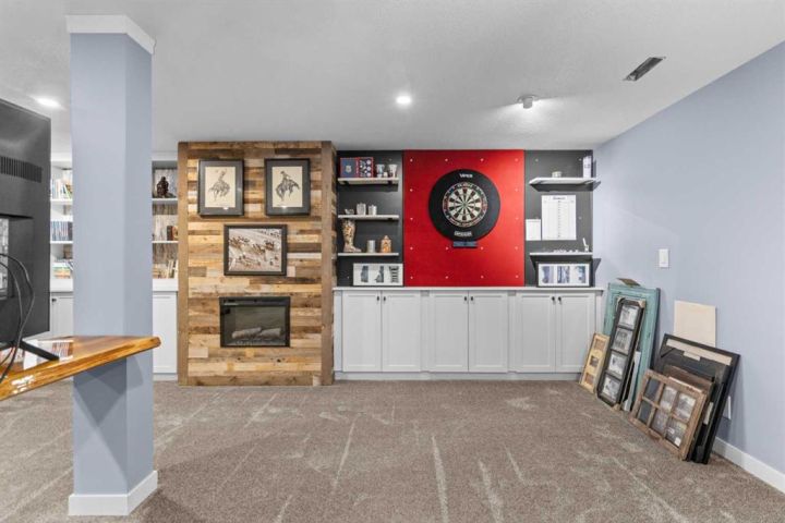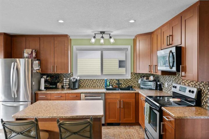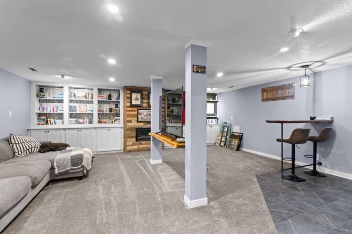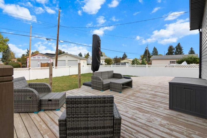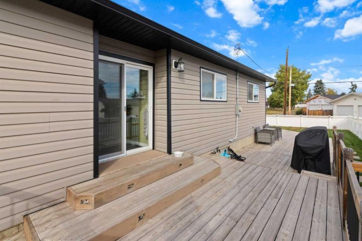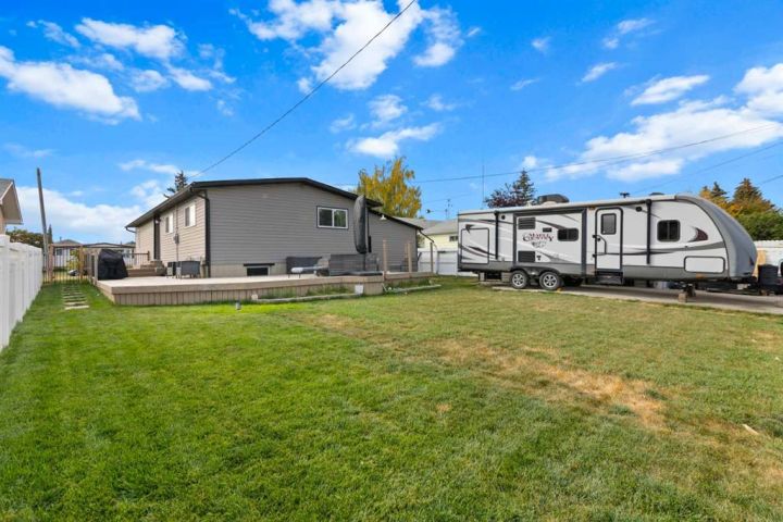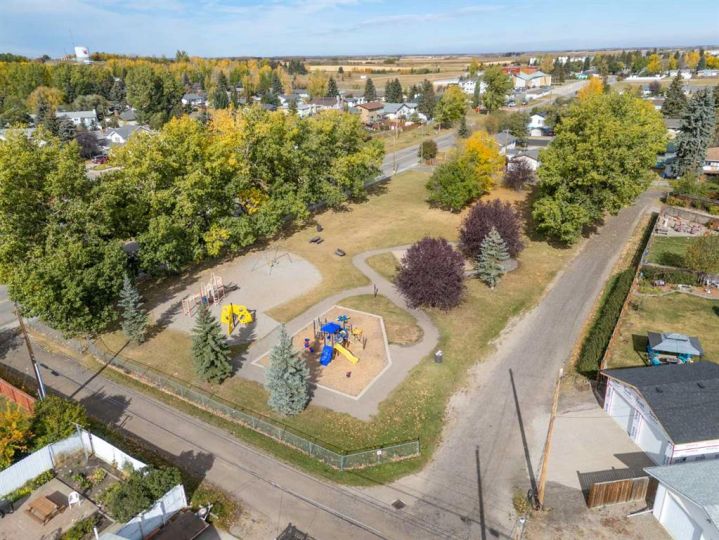 If you've ever felt that you wanted more than just the small town lifestyle? You've found it here! You get more yard, more updated finished space in the home, more parking and more of what this amazing small town has to offer. Located on a quiet street, you'll find this well updated bungalow complete with quality finishings. Walking in you've got plenty of room to hang up and put away your gear. The large chef's kitchen has ample maple shaker style kitchen cabinets, a stainless appliance package, an island with pot drawers and a built-in pantry for additional storage. There's a large breakfast nook, flanked by vinyl windows, which let in the beautiful south sun and an adjoining airy dining room. Hardwood floors flow through the living room and lead you out to the outdoor patio. Heading down the hallway you'll find the primary bedroom, with updated 3pcs ensuite bathroom, 2 more bedrooms and a full bath. Downstairs you'll find the coziest family room that you've seen in awhile, it comes with live edge built-ins and an electric fireplace to take the edge off on cooler days. There is a bedroom, gym, 2 pcs washroom, a super clean utility laundry room and a large storage room which provides deep storage for off season items. Heading outside there's a long double wide driveway which leads you to the oversized single attached garage. A huge yard includes a huge wrap around deck for outside entertaining, a no maintenance vinyl fence and a large shed. The yard is located on a T for the back lane so there is lots of maneuvering room to move your RV onto the dedicated concrete parking pad and it is all finished with a set of iron gates that provide the security you will want. The Didsbury park is located behind the home making it a great place for the kids or grandkids to play, all close to home. Disdbury has much to offer for those looking to make a shift to a slower pace. There is a fully appointed recreational complex complete with a pool with a water slide, an arena and curling rink. Health services including an acute care hospital and plenty of options for shopping and eating out. You are only 1/2 hour into Airdrie for your runs to Costco or Cross Iron Mills. If you are looking for a charming home in a lovely small town community - you've found it. Call now for your private viewing.
