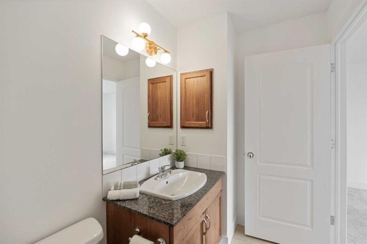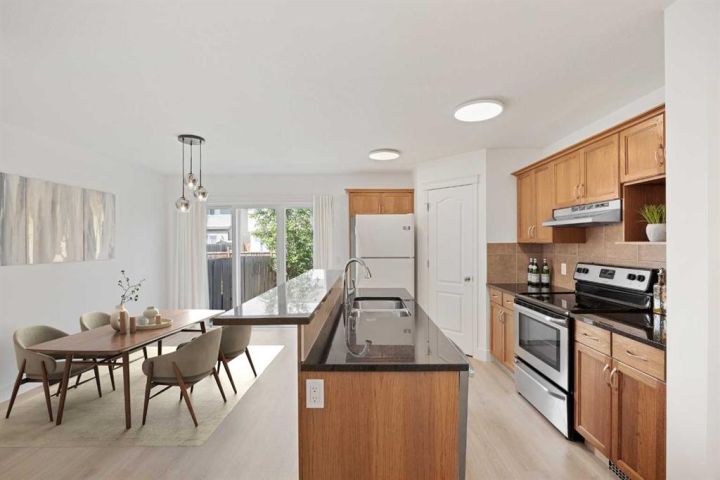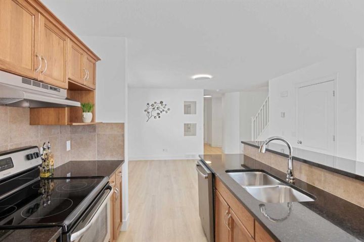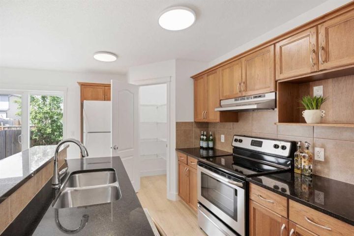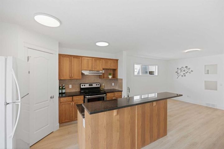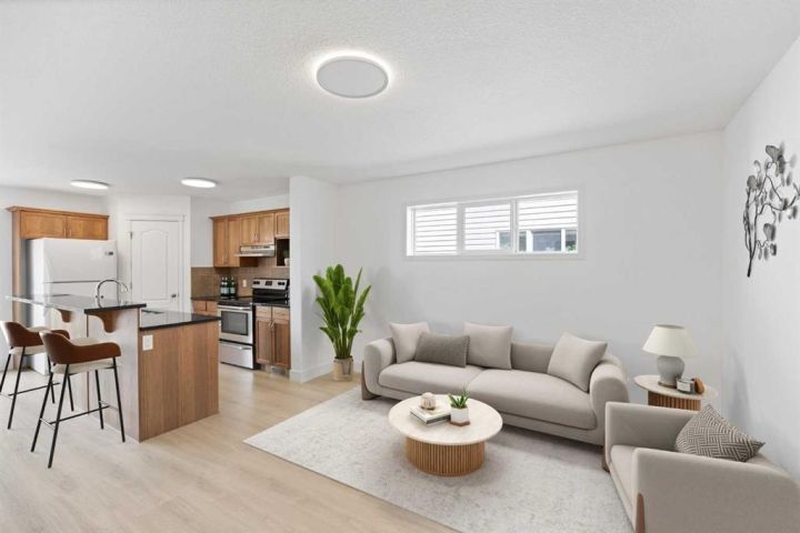 Welcome to this beautifully renovated half duplex offering an exceptional living experience in Cranston. This home features two spacious bedrooms, each equipped with its own four-piece ensuite, providing privacy and comfort. One of the bedrooms boasts a generous walk-in closet, another one has Her & His large closet. The property is flooded with natural light and designed for functionality, boasting a total of three bathrooms. Following the renovations, the place was upgraded with new light fixtures and new flooring, knock down ceiling, installed new doors and baseboards, added a new hood fan and given the entire property a fresh coat of paint. Enjoy the outdoors on the deck overlooking the backyard and benefit from the convenience of an attached one-car garage. Garage has additional entry door from backyard. The intelligent open floor plan includes the potential for additional living space in the unfinished basement, allowing for customization to suit your needs. Located directly across from Dr. George Stanley Elementary and Junior High School, this property offers easy access to public transportation, including bus stops, and is just minutes away from the South Health Campus, Cineplex VIP Cinema, Largest YMCA, huge shopping plaza in Seton. For your local shopping and dining needs, Sobeys - Cranston, Starbucks, and Good Earth Cafes, along with various restaurants, banks, and businesses, are within walking distance. Additionally, you'll find parks nearby that provide stunning mountain and downtown views, as well as bike and walking paths leading to the river. This fantastic property is ideal for young families, investors, and first-time homebuyers alike! Don't miss out on this incredible opportunity.