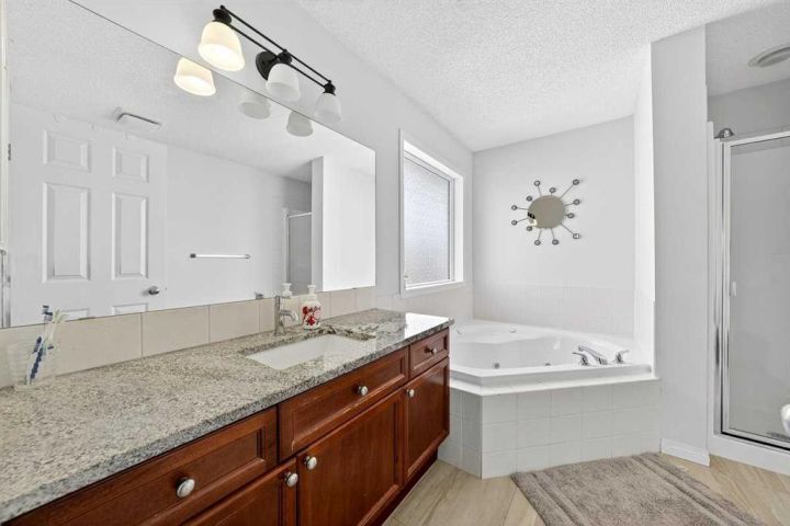 Prime Corner Lot in Saddleridge – Spacious Family Home with Income Potential. Located in the highly sought-after community of Saddleridge, this beautiful corner-lot home have new roof, gutters etc. (Sept. 2025), offers plenty of extra parking and a 9-foot ceiling on the main floor. The upper level features four generous bedrooms, while the main floor boasts a large family room, formal living room, and a versatile den. Enjoy hardwood flooring, granite countertops, and a master bedroom with a full ensuite. Step outside to a large deck with stunning views. The fully finished basement comes with a separate side entrance and its own laundry, currently rented for extra income. Close to all amenities, including schools, shopping, and bus stops. Don’t miss your chance to own this exceptional home in a fantastic location!
