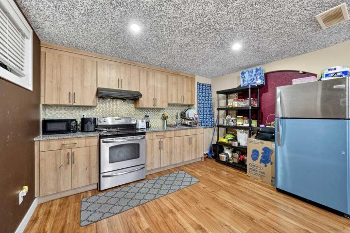 Basement Goods: Refrigerator, Electric stove, Washer, Dryer, Hood fan.