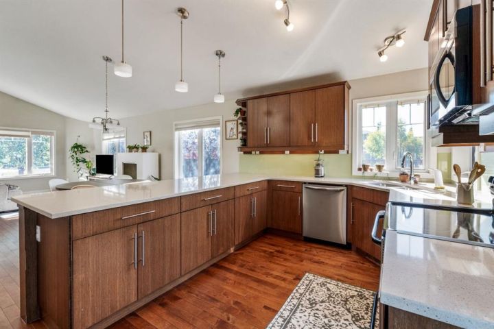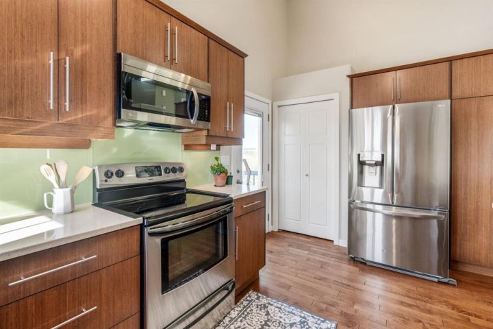 Awarded for both design and efficiency, this exceptional Cedar Ridge Homes property offers a rare combination of sustainability and luxury. The home boasts a platinum efficiency rating, featuring solar panels, spray foam insulation throughout, insulated basement concrete, a tile roof, hardy plank siding, and Pekka-Roll shutters on the upper windows. Low-water grass completes the eco-friendly exterior. The fully developed residence includes 5 bedrooms and 4 bathrooms across multiple levels, with a walkout third level and a stunning private engineered rooftop patio. The interior showcases quality finishes including maple flooring, bamboo cabinetry, and quartz countertops. Vaulted ceilings and large windows create an open, light-filled space, while central air conditioning and a moveable ethanol fireplace add comfort and ambiance. The location is truly unbeatable. Your private backyard opens directly onto Sunridge Park and Lake, providing immediate access to beautiful green space. Families will appreciate the walking distance to elementary, junior, and high schools, plus the abundance of nearby parks, playgrounds, and pathways. This one-of-a-kind home seamlessly blends environmental responsibility with modern comfort in a highly desirable neighbourhood setting.