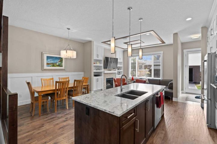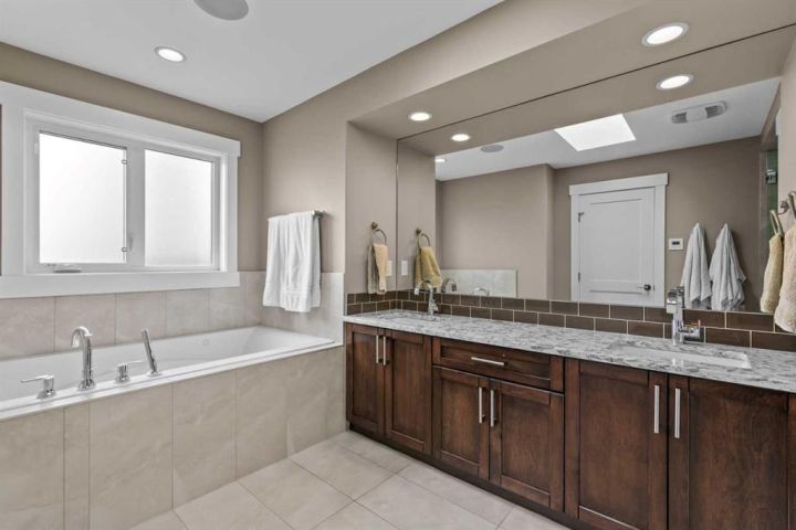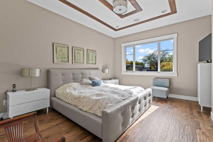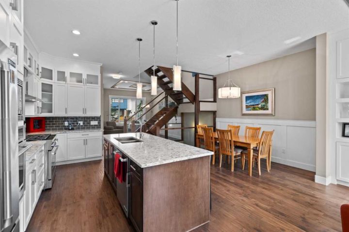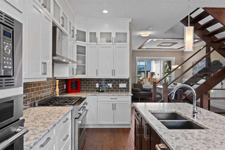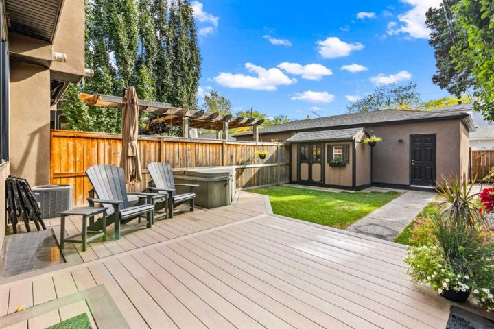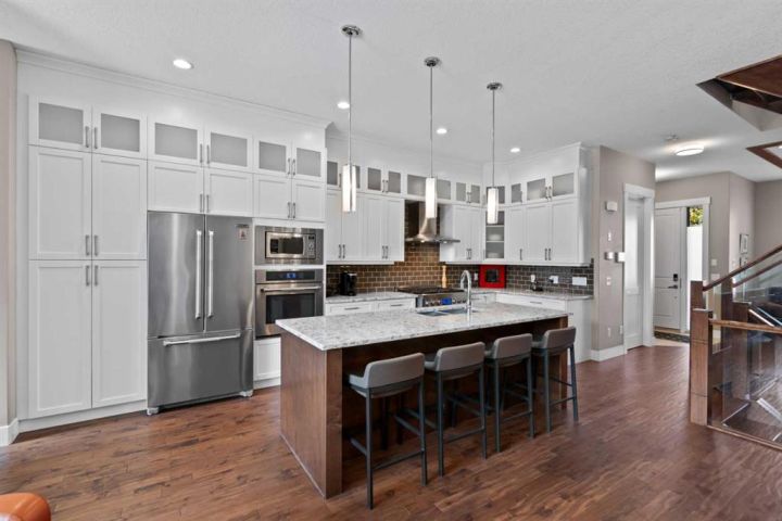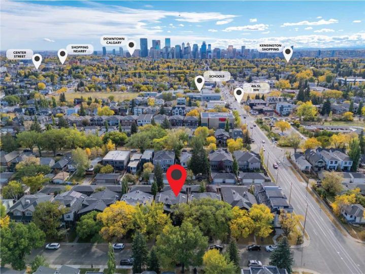 Welcome to this exceptional home in the highly sought-after community of Mount Pleasant, offering more than 2,600 sq. ft. of beautifully finished living space crafted for both comfort and style. Main Level Step inside to an inviting open-concept main floor with oversized windows that flood the home with natural light. The space features gleaming hardwood floors, a striking open-rise staircase, family room/office space and a sophisticated dining area. The spacious living room is anchored by a stone-faced fireplace with a built-in Rus sound system, creating a warm and elegant gathering space. The gourmet kitchen is a chef’s dream, equipped with a 6-burner gas stove, built-in convection wall oven, quartz countertops, abundant cabinetry, and a large central island—perfect for entertaining and everyday living. Upper Level Retreat to the luxurious primary suite, complete with a tailored walk-in closet, built-in speakers, and a luxury 5-piece ensuite featuring dual vanities, a jetted tub, a large steam shower, and in-floor heating. Two sizable additional bedrooms, a full bath, and a convenient upper-level laundry room with built-in storage complete this level. Lower Level The fully developed basement extends your living space with in-floor heating, a large rec room with a built-in, a wet bar with beverage fridge and built-in wine holder, plus a fourth spacious bedroom, full bath with large shower, and ample storage. The home is equipped with central air conditioning, a large water heater, and a new roof (2022) with upgraded attic vents. Outdoor Oasis Step outside to your private backyard retreat, featuring a large composite deck, built-in hot tub, professional landscaping, and a 10' x 6' shed with skylight designed by Shed Solutions. The double detached garage is insulated, drywalled, painted, and finished with an epoxy floor and 8-ft door. Prime Location This exceptional property is ideally located just minutes from Confederation Park, Mount Pleasant Art Centre, University of Calgary, Nose Hill Park, golf courses, the Winter Club, and an array of local shops and cafes. Families will love being within walking distance of schools, parks, and playgrounds, with an easy commute to downtown. This beautiful Mount Pleasant home has it all—modern design, thoughtful upgrades, and an unbeatable location. Don’t miss your chance to make it yours!