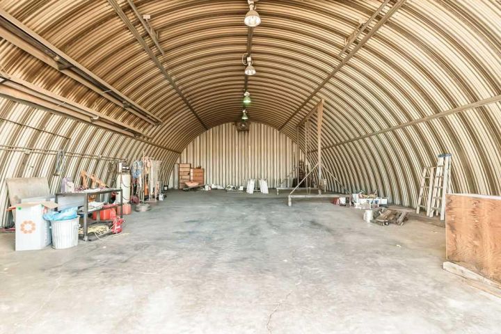 - Metal in-and-out garage/shop is insulated and heated. Quonset with overhead door - 40' x 62', shed - 12' x 24