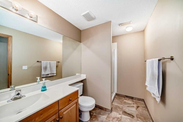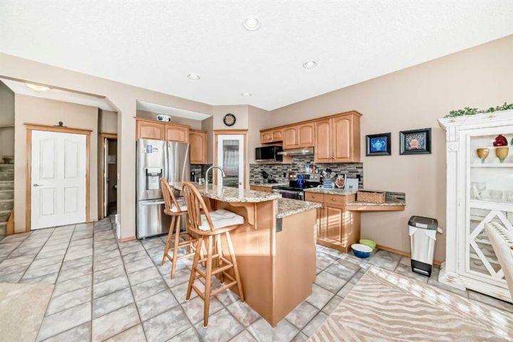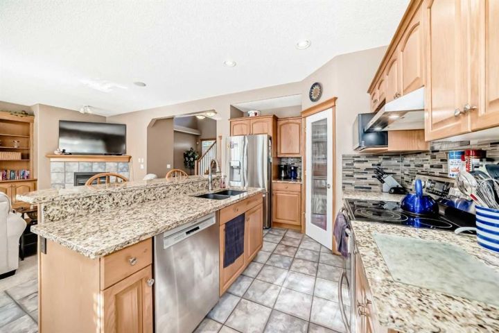 Incredible 2 storey in the family friendly neighbourhood of Thorburn. Highly upgraded and lovingly maintained this fully finished stunner will impress. The main floor is wide open with the kitchen overlooking the living & dining rooms plus the backyard.. There is loads of counterspace and cabinets plus there is a handy corner pantry. The SS appliances, the tiled backsplash, the granite countertops are all newer as is the carpeting throughout. The living room is quite cozy with custom builtin bookshelves and a gas burning fireplace with nice large mantle & tiled surround. The dining area is also a good size~ it will hold any size ding room set. Off the dining room you will find the walkout to the backyard~ a wonderfully warm south exposure with loads of privacy! There is a handy stone RV parking pad, tons of trees & shrubs, a corner pond feature and a large deck which is great for entertaining. On the way to the double attached garage you find the main floor laundry with extra storage & cabinets and a 2 pce powder room. The garage has been updated with a new door, epoxy and Heated Floors plus builtin shelves. Upstairs you will love the Primary bedroom as it is bright, warm and large! It has a walkin closet and a full 4 pce ensuite with deep soaker tub and standup shower. The two spare bedrroms are also a good size and share a full 4 pce main bathroom. Loads of windows and really high ceilings provide an abundance of natural light throughout this home. The lower level is fully finished with the 4th large bedroom, a full 3 pce bathroom that boasts heated floors and a massive rec room that is a great retreat for entertaining friends or maybe a teenagers space! What a great family home in Thorburn~ easy access to Deerfoot, easy walk to all the schools, parks and playgrounds plus all the shopping you could need.