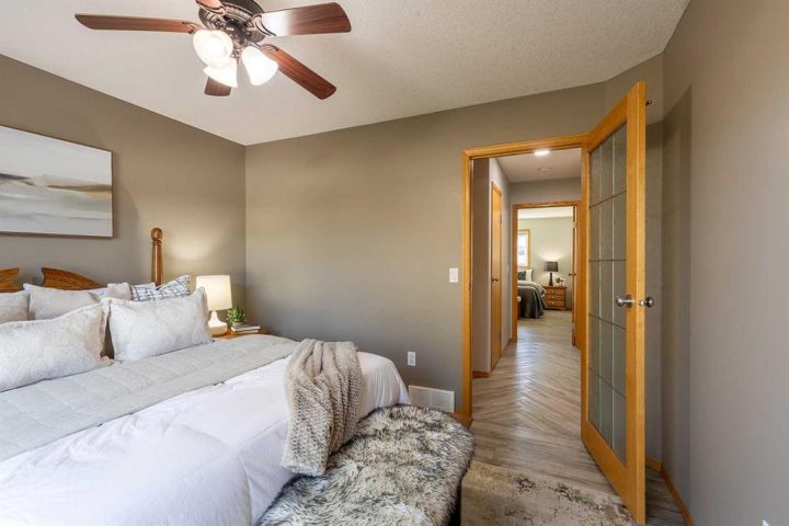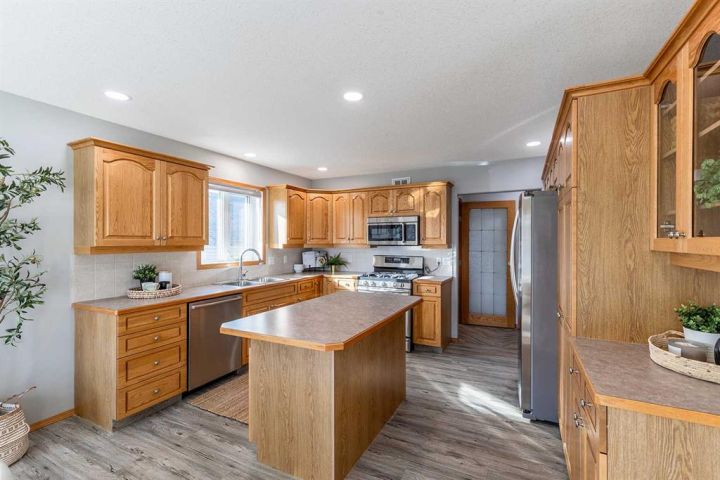 This spacious and meticulously maintained 5 bedroom, 3 bath home is built with high-efficiency ICF construction and boasts an impressive list of updates!! The bright basement features 3 large bedrooms, huge windows, a full kitchen (perfect for a suite or wet bar), expansive family room, and a new 3 pc bath (2023). This basement suite is perfect if you have a family member you want to stay close or even an Air BnB. Seperating the main house and lower suite is an easy fix, ask me how!! On the main floor you’ll find vaulted ceilings, a cozy gas fireplace, updated bathrooms, and a super spacious kitchen with stainless steel appliances, gas stove, and island seating. This is truly the heart of the home. The primary suite includes a walk-in closet and updated ensuite. Upgrades include shingles & eaves (2017), vinyl plank flooring (2021), new garage heater (2024), pot lights, oak stair treads, newer HWT, and raised toilets. The 24x26 heated garage, RV parking, underground sprinklers, and wiring for a hot tub add to the appeal. The deck offers gas BBQ hookup, storage below, and new stairs. This home is an easy move, blending style, function, and flexibility—whether you need extra space for family or a separate suite option, it’s ready to go!!