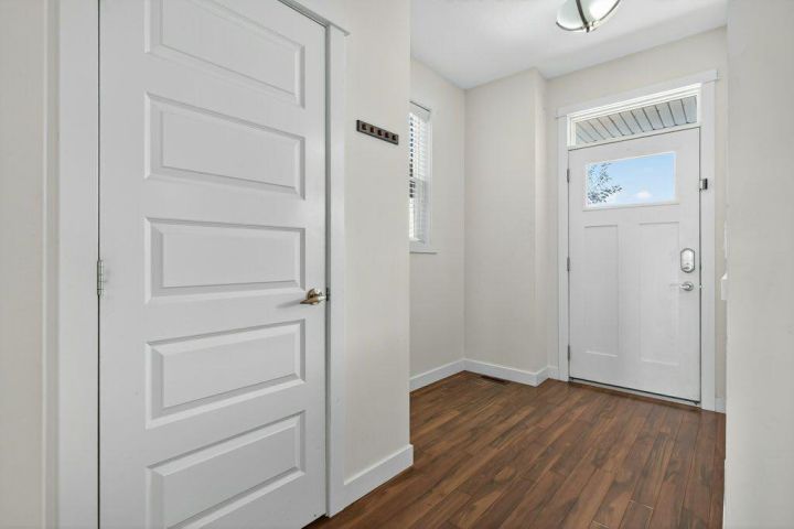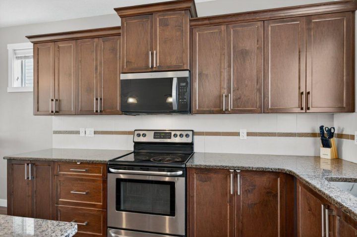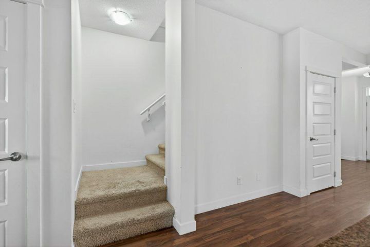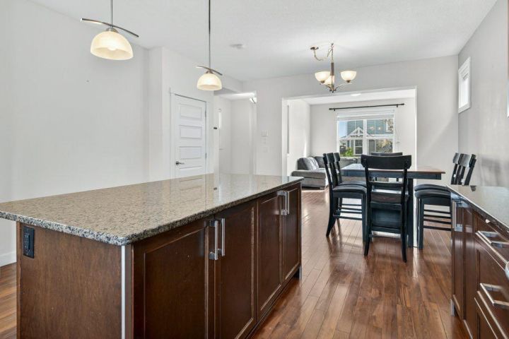 ntroducing this adorable former show home in the highly sought-after community of Williamstown! Tucked away on a quiet close with no through roads and backing onto peaceful farmers’ fields, this home offers a perfect blend of style, comfort, and tranquility. Step inside to discover an open, inviting layout ideal for entertaining or relaxing with family. The main floor features durable laminate flooring, 9-foot ceilings, and a bright dining area filled with natural light and designer touches. The cozy living room fireplace creates a warm ambiance, while the massive kitchen island is perfect for baking, breakfast, or gathering with friends. With modern cabinetry and plenty of storage, this kitchen truly stands out. Upstairs, enjoy the spacious primary retreat complete with a large walk-in closet and a luxurious ensuite featuring a soaker tub and stand-alone shower. The upper-level laundry adds everyday convenience, and two additional bedrooms plus a full bathroom complete this level. The fully finished basement offers extra living space, perfect for a family room, home office, or gym. The fenced backyard includes a concrete pad ready for a future double garage, with paved alley access for additional parking. With 4 bedrooms, 3.5 bathrooms, and no neighbors behind, this charming home has it all, close to schools, shopping, playgrounds, and walking paths. This is the one you’ve been waiting for!