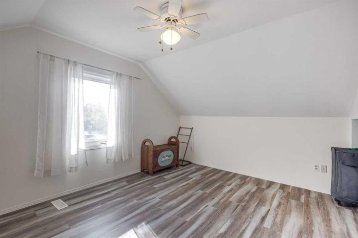 2 bedroom 2 bath, move-in ready, character home in the heart of Ponoka! This home is situated on a large corner lot surrounded by spruce trees and a newer fully fenced yard! The main floor of this home is bright, cozy and features: high ceilings, a spacious kitchen, combined dining and living room and 4 piece bath. The upper level offers two spacious bedrooms with room for that king sized bed, so much character, charm, and a 2 piece bath. The basement provides ample space for storage and laundry. Recent upgrades since 2020 include: new shingles, new HWT (2023), new flooring, new fully fenced backyard, new paint, new main floor toilet and vanity, 2 newer windows, and a new garage door. You're sure to love the large 25x23 detached garage perfect for your toys, vehicles and storage needs. Enjoy the HUGE landscaped backyard with a fire pit, offering privacy and still tons of yard space, perfect for pets, and entertaining friends and family gatherings. This charming home offers tons of value in a great location, walking distance to excellent schools, shopping and recreation center.