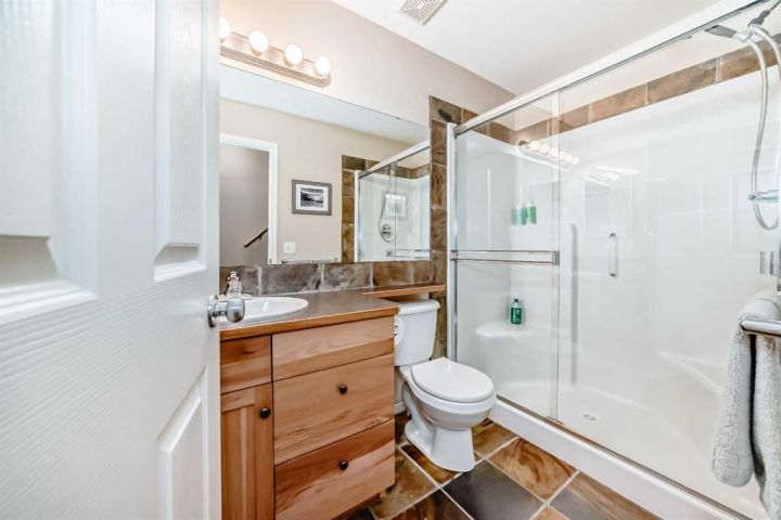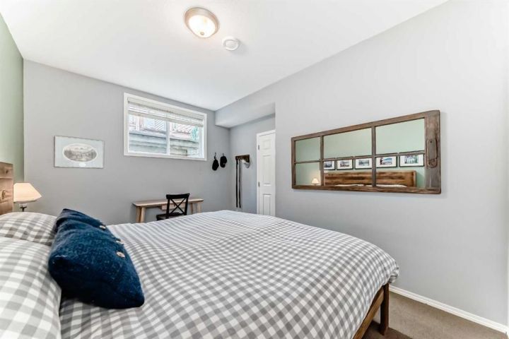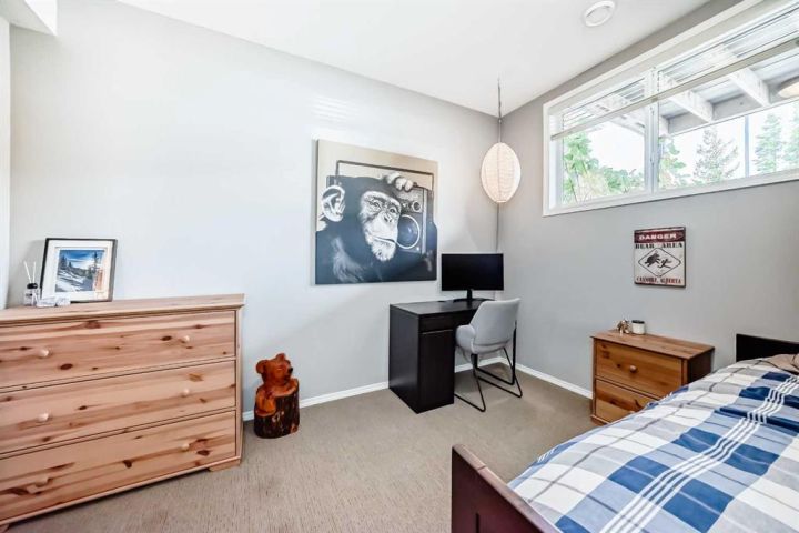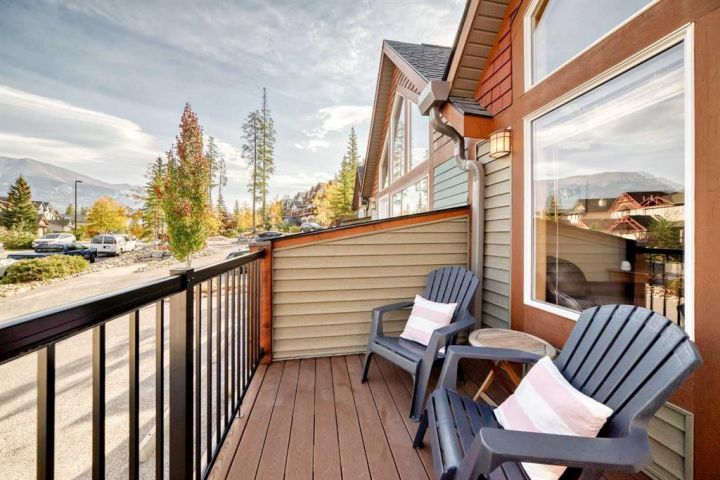 Visit REALTOR® website for additional information. Ideal as a full-time home for a small family or a picture-perfect weekend retreat, this two-level, two-bedroom, 1.5- bath townhome offers incredible value in one of Canmore’s most sought after, lifestyle-oriented communities. As an end unit with no neighbours above or below, the home feels like your own private mountain chalet. Large windows frame both front and rear views, while vaulted ceilings create a bright, airy atmosphere upstairs. The open kitchen and dining area flow beautifully together, while the living room, with its soaring ceilings and cozy gas fireplace, provides the perfect place to gather. Step outside to either the front deck or rear patio and enjoy uninterrupted mountain vistas, with direct access to the Kananaskis Country wildlife corridor. Downstairs, in-slab heating ensures year-round comfort, keeping the two generously sized bedrooms warm in the winter, while the home’s natural positioning helps maintain a cool retreat in the summer. Together, both levels offer 1,064 sq. ft. of thoughtfully designed living space. Practical perks include a convenient parking spot right at your doorstep. The location is second to none: enjoy a short walk to Quarry Lake Park and take advantage of close proximity to the Canmore Nordic Centre. Beyond your home, endless recreational opportunities await, from hiking and biking to skiing and exploring. With quick connectivity to Calgary via the Parkway, you’ll have the best of both worlds at your fingertips.