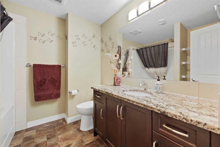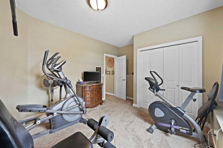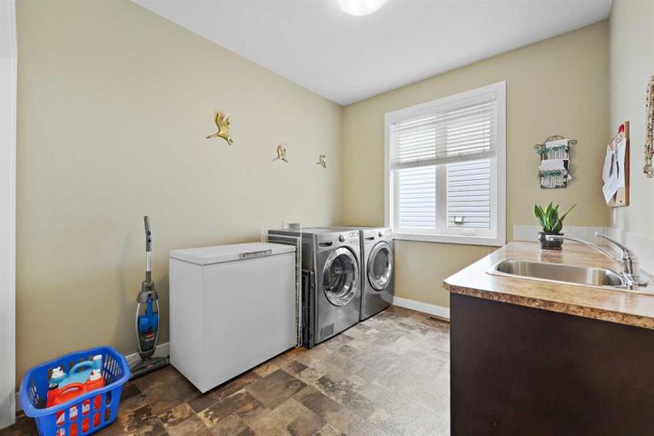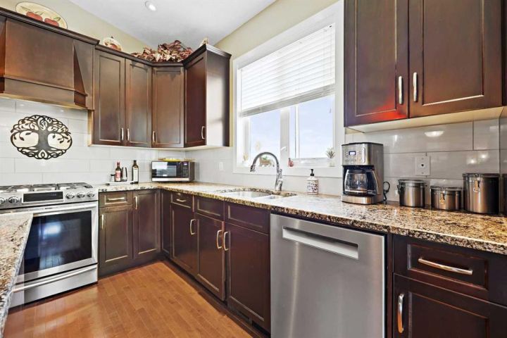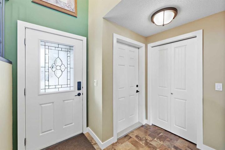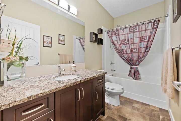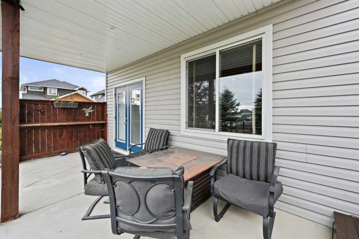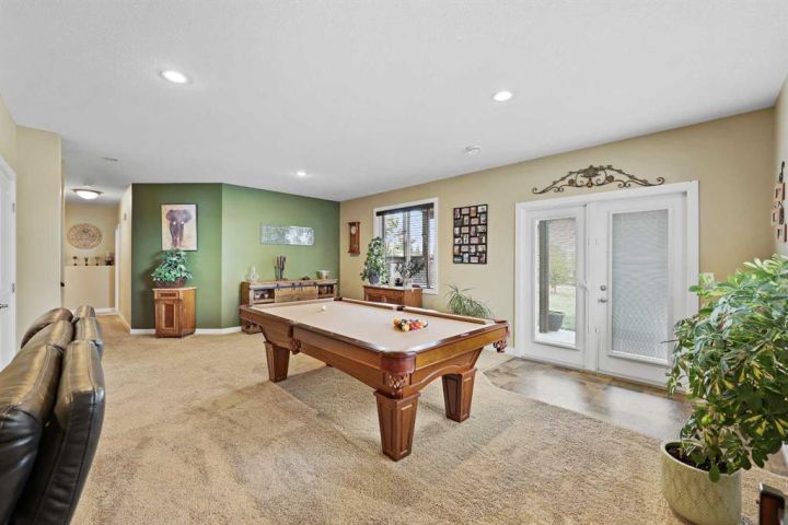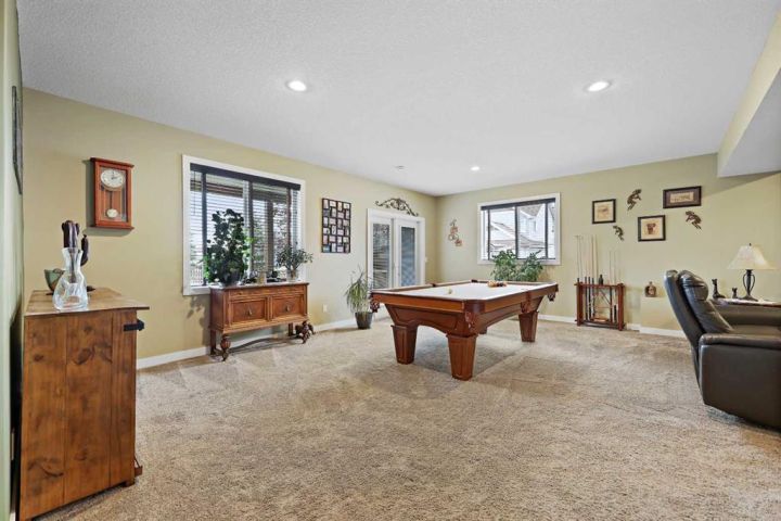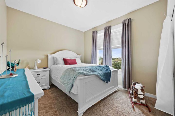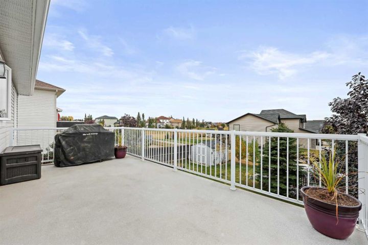 Pride of ownership shines throughout this beautifully maintained, custom-built home in the sought-after West Highlands community of Carstairs. Offered by the original owners who customized the design in collaboration with a reputable local builder, this thoughtfully tailored layout offers both comfort and sophistication—perfect for those seeking a refined small-town lifestyle. The welcoming open-concept main floor features a soaring vaulted ceiling and a striking three-sided fireplace that provides a warm visual divide between the living and dining areas. The kitchen is a delight for the home cook, complete with granite countertops, a gas range, and ample workspace for entertaining. A secondary bedroom and full bathroom, along with a generous laundry and storage room, complete the main level. Privately tucked above the garage, the primary suite is a peaceful retreat with a walk-in closet, 3-piece ensuite, and charming window seat overlooking the neighborhood. Downstairs, the walkout basement extends your living space with in-floor heat, a spacious recreation room large enough for a pool table, living room, a third bedroom, and a full bathroom—ideal for guests or family visits. Step outside to enjoy tranquil views of the expansive greenspace beyond your private backyard, featuring a large upper and lower decks, gated RV pad and beautifully maintained landscaping. Additional highlights include a heated double garage, central air conditioning, a newer hot water tank, and central vacuum. Situated in one of Carstairs’ most desirable neighborhoods, this property offers the perfect balance of elegance, ease, and small-town charm.