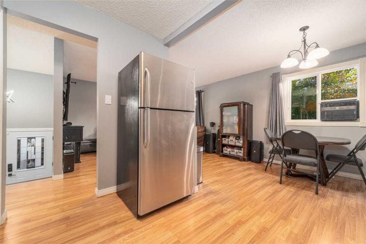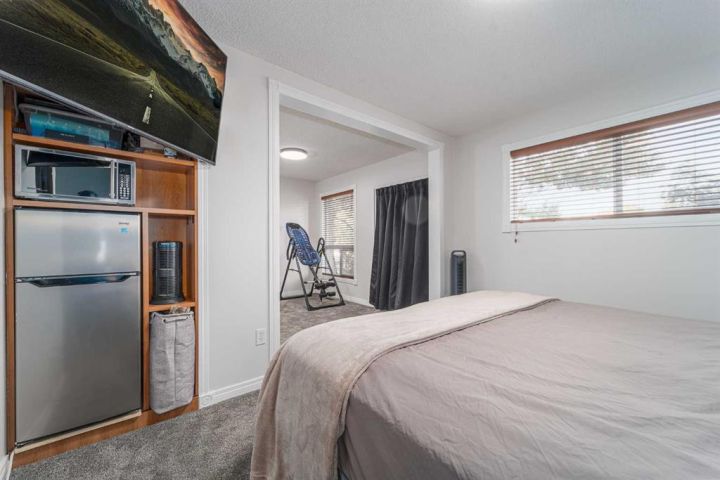 Nestled on a mature tree lined street in West Lethbridge, this meticulously maintained home offers a rare combination of privacy, updates and location. It backs directly onto a green space and is only a short walk from Nicholas Sheran Lake, parks, schools and everyday amenities, making it a great fit for families and anyone who enjoys being close to nature. Inside, the main level greets you with a bright and inviting living room, a dining area filled with natural light and a functional kitchen with tasteful updates. Down the hall you will find a clean 4 piece bathroom and an oversized primary bedroom created by combining two original bedrooms into one spacious retreat. The lower level offers even more living space with two additional bedrooms, a freshly updated 3 piece bathroom and a dedicated laundry area. It also features a private zone with its own kitchenette, dining area and living room which is perfect for extended family, guests or generating extra income by renting out part of the basement. This home has seen significant updates in recent years including a new roof and siding in 2024 along with updated windows which gives you peace of mind for years to come. Outside you will love the beautifully landscaped backyard with underground sprinklers and a stunning stamped concrete patio that is ideal for barbecues, family gatherings or simply relaxing in your own private retreat. With its versatile layout, thoughtful updates and prime location, this property is an exceptional opportunity for both homeowners and investors.