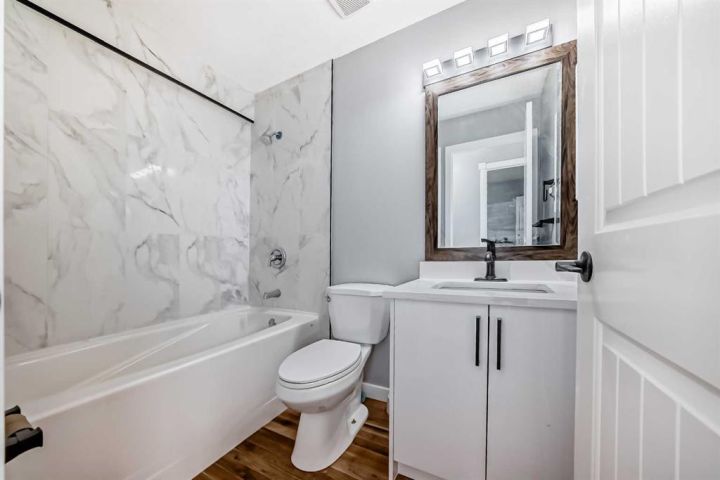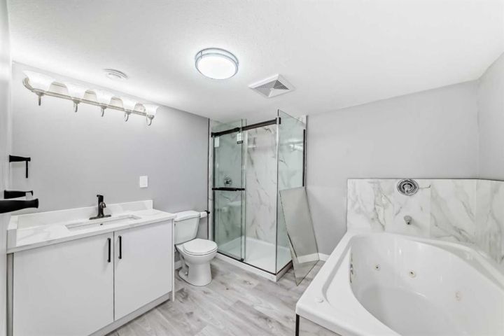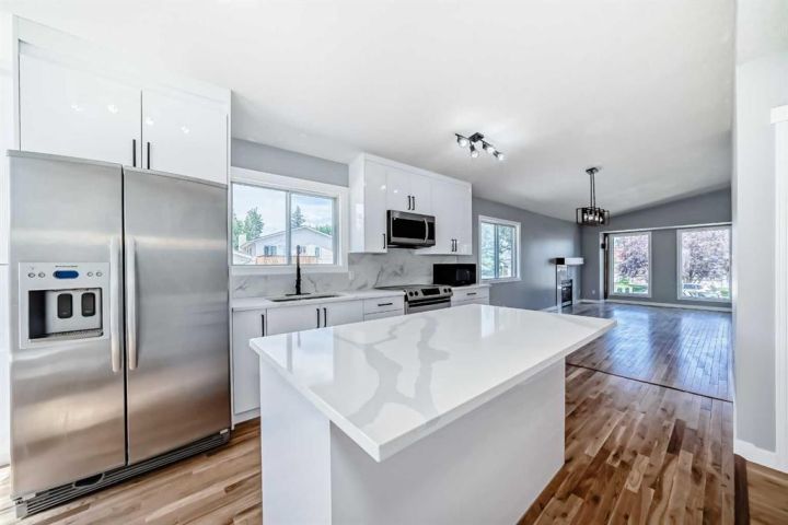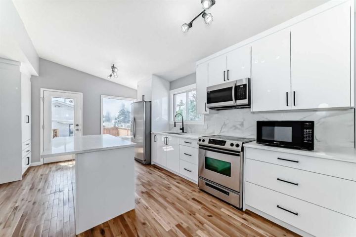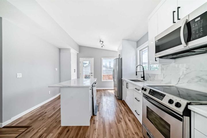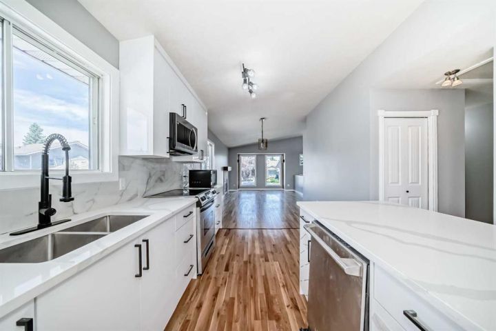 Welcome to this completely remodeled airconditioned home from top to bottom. Kitchen cabinets, floors, paint, lighting fixtures, and many more! Open concept home with 2 oversize heated garage. No space wasted on this corner lot house. Inside you will find bright open concept featuring beautiful hardwood floors, a mesmerizing kitchen with lots of storage space. A beautiful island & stainless steel appliances. Main level is finished off with a nice sized dining area as well as a cozy living room, 3 bedroom and 2 full baths. Downstairs features 2 large & bright bedrooms with huge windows, brand new kitchen, family room and a full jetted tub bath. Outside you will find the newly installed blacony. Shed and a 2 oversized detached garage (25" X 23"). The lot is big with garden! This home is close to schools, playground, and other amenities. Thank you for your interest!