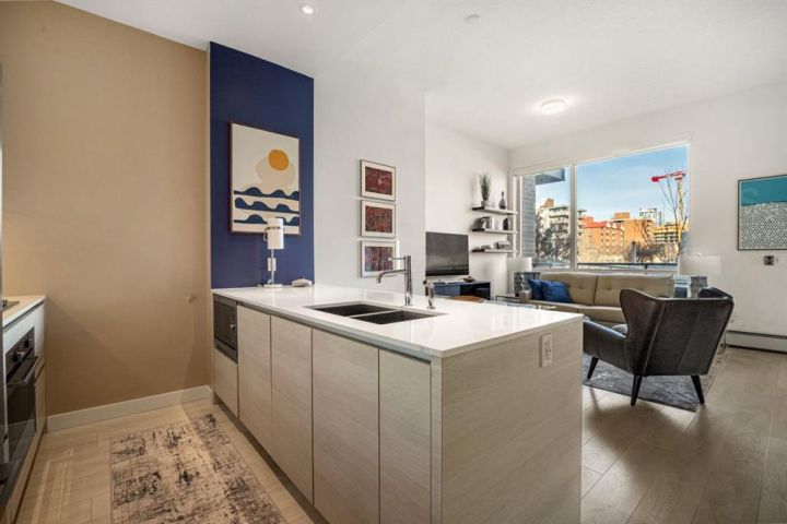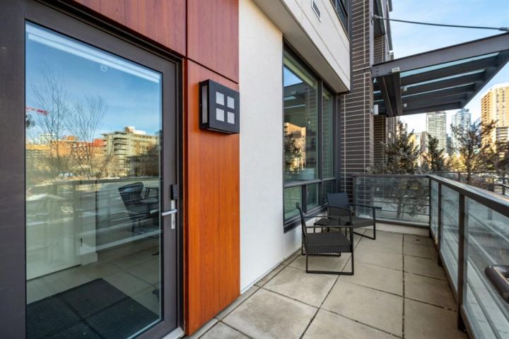 Welcome to this fantastic multi-level townhouse-style unit at The Smith, offering over 1,000 sq. ft. of thoughtfully designed living space. Enjoy the best of urban condo living with the privacy of your own separate street entrance, just steps from Calgary’s vibrant 17th Avenue. Inside, you’re greeted by soaring 12-foot ceilings and a bright, open living room with massive east-facing windows, and a low-maintenance LVP floor throughout the main level. The chef’s kitchen features granite countertops, stainless steel appliances, full-height cabinets, a gas stove, and space for bar stools at the breakfast bar—perfect for entertaining. There is enough room for a dining table, with a built-in charging station conveniently located off to the side. You’ll also find a half-bath with a large storage room, and additional storage under the stairs, all included on the main floor for maximum convenience. Start your day outdoors on your east-facing front patio, a charming space to sip coffee, soak in the sun, and enjoy the neighbourhood vibe. Upstairs, you’ll find large bedrooms, a fully appointed main bathroom with dual sinks, a stand-up shower, and a tub. Enjoy a fresh start—with brand new carpet through out the upper floor and freshly painted walls this home is completely move-in ready. The unit also includes in-suite laundry, conveniently located on the second floor. Storage is truly unmatched here—additional storage includes, a linen closet, coat closets on both levels, and built-in shelving in all closets, along with a separate, secure, dust-free storage locker. You simply won’t find another unit with more built-in convenience. Titled underground parking, bike storage, and pet-friendly policies (up to two pets, max 25kg each with board approval) make this a truly turnkey urban home. Building amenities include a concierge service, owner’s lounge, and a bike share program. With heat and water included in the condo fees, this LEED-certified concrete building offers maintenance-free city living in the heart of the Beltline. Don’t miss the opportunity to experience modern, urban convenience and style steps from Calgary’s best shops, cafés, restaurants, and transit options. Book your private showing today!