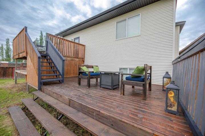 Come in and check it out! Charmingly updated and move in ready! this raised bungalow offers 3 spacious bedrooms upstairs. A great open plan with plenty of windows where the natural light floods into the open dining and kitchen area, step into the cozy sunken living room for relaxing time. The fully finished lower lever offers a large games room, the perfect space for family fun or entertaining guests, pool table negotiable. A spacious fourth bedroom plus another full bathroom. Step outside the back door to a beautiful two-tiered deck overlooking the private backyard-ideal for summer BBQ's and relaxing evenings. Plus this massive pie shaped lots has back alley access for additional room for your RV, trailer, or extra vehicles. This home is a rare find with both style and space! Book an appointment with your realtor today! The home also offers A/C for the hot days.