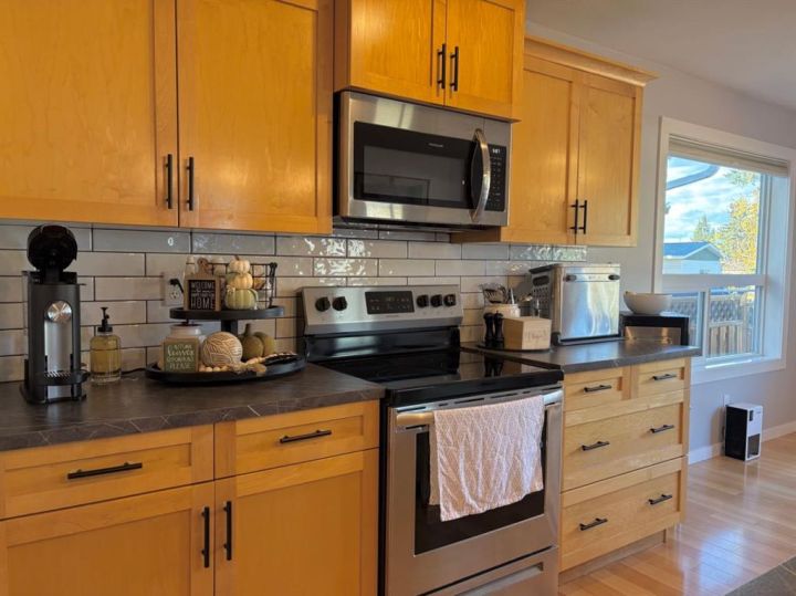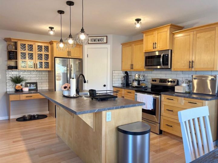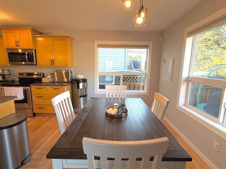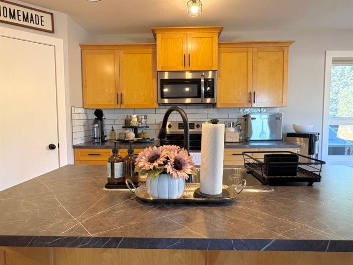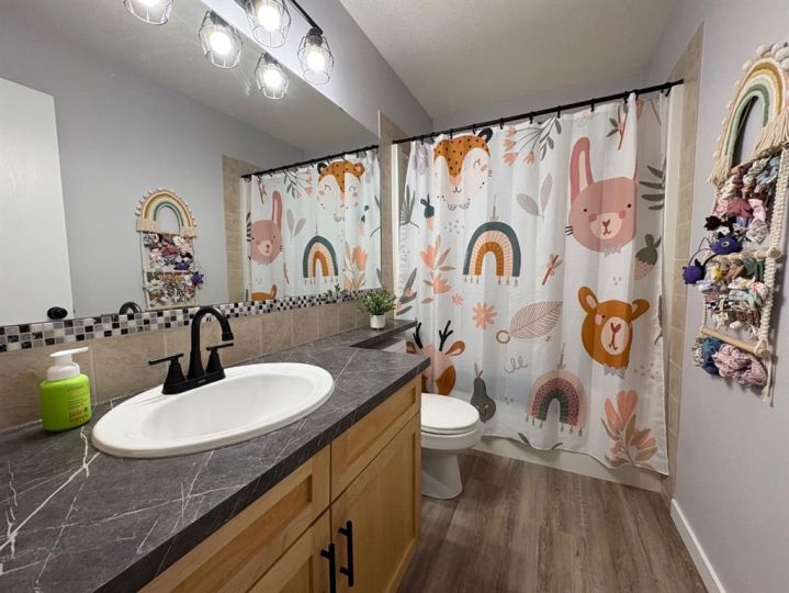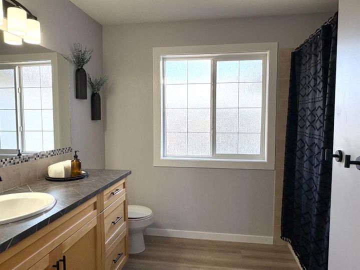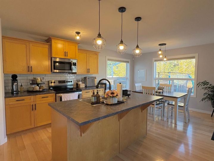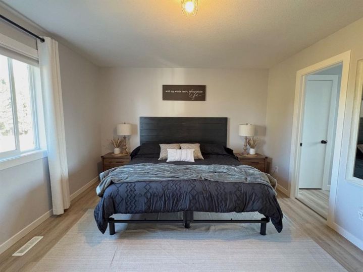 This spacious, bright and well located home has seen many quality upgrades in recent years making it ready to move in and make your own! Offering nearly 2000sqFt plus a developed basement, 5 bedrooms and 4 bathrooms. You will love the layout, many large windows letting the natural light pour in, high ceilings and modern updates throughout. The main level starts with a large entry way with coat closet, open sight lines through the kitchen, dining and living room, a half bath, laundry room with new washer/dryer (2023) and access to the attached garage. The kitchen was recently updated with new countertops, backsplash, hardware and some appliances. Featuring a corner pantry and an island with room for barstools. The upper level features a large bonus room perfect for a play room, family room or whatever your needs are. The primary bedroom is spacious and features a full ensuite and walk-in closet. Two additional bedrooms and a full bathroom complete the upper level. The basement features a perfect space for a theatre room, family room, guest space and more. There are two more bedrooms and full bathroom here as well. The yard is a good size and is fully fenced and nicely landscaped with a gravel pad perfect for a kids play centre, fire pit area and more. This home has been well maintained and updated over the years including: 50 year shingles approx 2022, all new paint in 2023, updated trim and mouldings to modernize the finishing, new flooring on the upper level, basement and stairs, air conditioning added, all new lighting, new countertops and backsplash and a new hot water tank 2024. The pride of ownership stands out and allows you to enjoy this home for yourself!