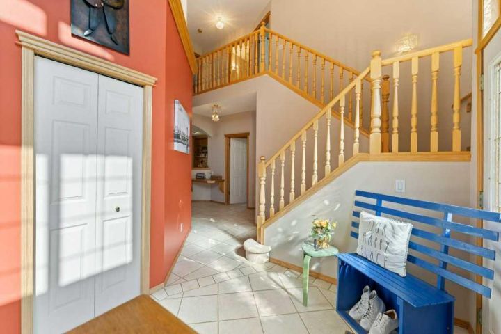 This immaculate, move-in ready home offers over 3,300 sq. ft. of beautifully finished living space in one of Strathmore’s most desirable cul-de-sacs. With a tile roof, stucco exterior, and timeless design, this property has been exceptionally maintained and is ready for its next family. Step inside to a vaulted entrance that opens into a bright, open-concept main floor filled with natural light. The spacious kitchen features granite countertops, a corner pantry, stainless steel appliances, and a sunny breakfast nook overlooking the backyard. The inviting family room is anchored by custom oak built-ins with granite accents, perfect for cozy evenings or entertaining. A convenient main floor laundry, mudroom, and 2-piece bath complete this level. Upstairs, you’ll find a generous bonus room – ideal for a kids’ zone, family movie space, or home office. The primary suite easily accommodates a king bed and offers a full ensuite and walk-in closet. In total, this home provides 5 bedrooms and 3 full bathrooms, giving everyone their own space. The professionally finished basement, developed by the builder, adds even more living and storage options. Outdoor living is made easy with a deck (with gas line for BBQ), underground sprinklers, and mature landscaping. Additional highlights include: dual furnaces, dual hot water tanks, and a reverse osmosis system. All this in a prime location: tucked away on a quiet cul-de-sac, just steps from parks, playgrounds, the new rec centre, and walking/biking paths. You’ll love the small-town charm of Strathmore with the convenience of easy access to Calgary for commuters. A rare opportunity to own a large, well-appointed family home in a highly sought-after neighbourhood – don’t miss it!
