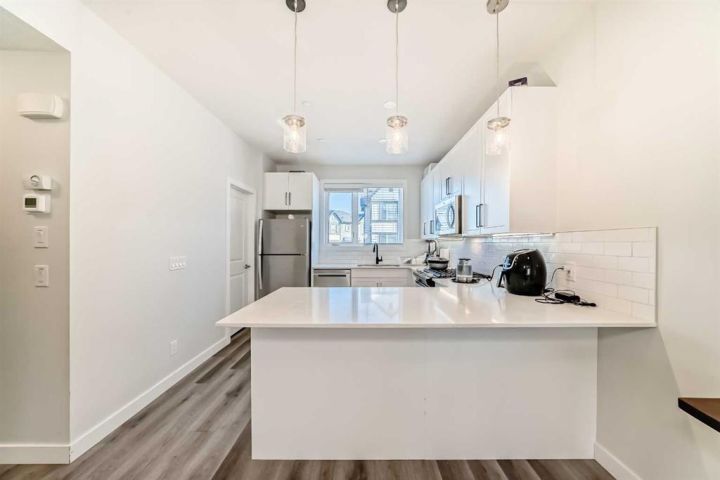 ***END UNIT*** This bright and spacious home features 3 bedrooms, 2.5 bathrooms, and over 1,600 SQFT of living space. The main level boasts luxury plank flooring and an open-concept layout with quartz countertops, stainless steel appliances, a breakfast bar, and a sunny deck just off the living room — perfect for entertaining! Upstairs you'll find three bedrooms and two full bathrooms, including a spacious primary suite with a full ensuite. Enjoy the convenience of a tandem attached garage plus driveway parking, with space for three vehicles. Fantastic location just steps from parks, public transit, schools, and shopping. Don't miss out — **call today to schedule your private viewing!