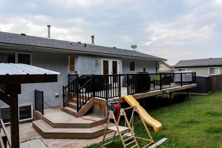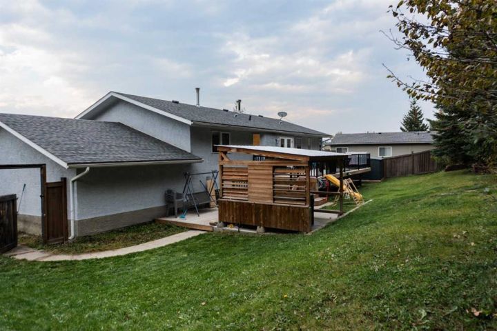 Located in a desirable neighborhood, this spacious and updated home offers 6 bedrooms and 3 bathrooms, perfect for a growing family. Situated on an oversized lot, the property features a massive backyard complete with a covered hot tub, treed fire pit area, and a large deck. The main floor has 3 bedrooms, including the primary suite with a 3-piece ensuite. The heart of the home is the renovated kitchen, offering ample storage, modern finishes, and a large eat-at counter, perfect for entertaining. Downstairs, you’ll find 3 additional bedrooms, a 4-piece bathroom, and a cozy family room with a wood-burning stove. This home has tons of room to park an RV as well as an attached garage.