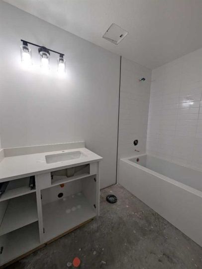Don’t let this chance pass; be the first to make this lovely new walkout bungalow your home. Built by New Tab Homes Ltd. and DP76 Construction, this thoughtfully designed property blends modern style with practical functionality. Offering 1,099 square feet of beautifully planned living space, the open concept layout creates a bright and welcoming atmosphere. The kitchen, dining, and livingroom areas are seamlessly connected, perfect for both everyday living and entertaining. The kitchen is equipped with a large center island, abundant counter space, and a convenient corner pantry. Patio door off the dinning room lead you to the covered balcony that overlooks the yard. The main floor also includes a laundry room, a 2 piece guest bathroom, and a well appointed primary bedroom featuring a walk-in closet and a luxurious 4 piece ensuite. Downstairs, the fully developed walkout basement will offer a large family room with direct access to a covered patio, 2 additional bedrooms, and a full 4 piece bathroom. A double attached garage and a spacious driveway ensure plenty of parking for your family and guests. ** RMS square footage is based on builder plans.