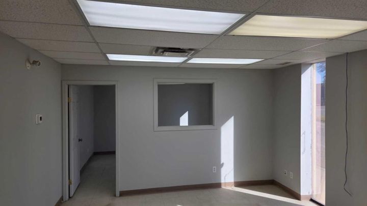 End bay unit, developed with one office, reception/display area, balance of space is open warehouse. South facing office area fronting 76 Street ; yard area accessed off 49th Ave and is paved. Office has T-bar ceiling 2 x 4 recessed lights, VC Tile Flooring. office furnace (on mezzanine); office is air conditioned. Two washrooms located in warehouse area. Warehouse/ shop area has two overhead forced air heaters, floor drain, 12 x 14 overhead door, upgrades include new LED lighting and paint This unit is part of a six unit building. Other Tenancy in the building are automotive mechanic, windshield/ glass replacement. Rate shown is for year one of a multi year lease, Landlord is open to shorter term leases. Additional rents for 2025 estimated at $4.50 psf; Tenant has separate utilities (electricity and gas). Bay would suit mos light industrial uses, contractors, suppliers; ideal for those requiring inside storage of materials and sales admin office.