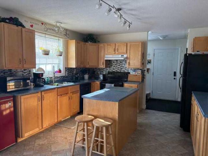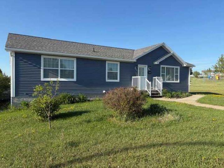 Welcome to your dream home in the newest neighborhood of Hardisty ! This stunning 2007 bungalow boasts an impressive layout featuring 5 spacious bedrooms and 3 modern bathrooms, making it the perfect haven for families of all sizes. As you step inside, you're greeted by an entryway that leads to a large living room, ideal for entertaining or relaxing. The main floor showcases one level living , seamlessly connecting the inviting living room, a contemporary kitchen, and a dining space that fills with natural light. 2 nice size bedrooms as well as the large primary suite. The added feature of main floor laundry complete the main level of the home. Patio doors from the dining room provide access to a beautiful wrap around deck, perfect for summer barbecues, all while overlooking a meticulously manicured yard with garden area that offers a serene outdoor retreat. The fully finished basement adds even more value to this incredible home. Here you'll find two additional living rooms, two extra bedrooms, ample storage space, and a full bathroom, providing plenty of room for guests or family activities. This property also includes a over sized double garage ( insulated ) , ensuring your vehicles and belongings stay protected year-round. Ample space for RV parking. The yard, along with beautiful landscaping and sidewalks offers peace of mind for years to come. Added feature if this home is its close proximity to the community playground. Just steps away from access to the famous Hardisty walking path trails leading directly to the gorgeous views of the Battle River.