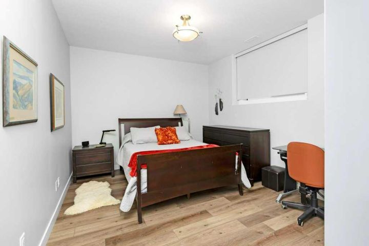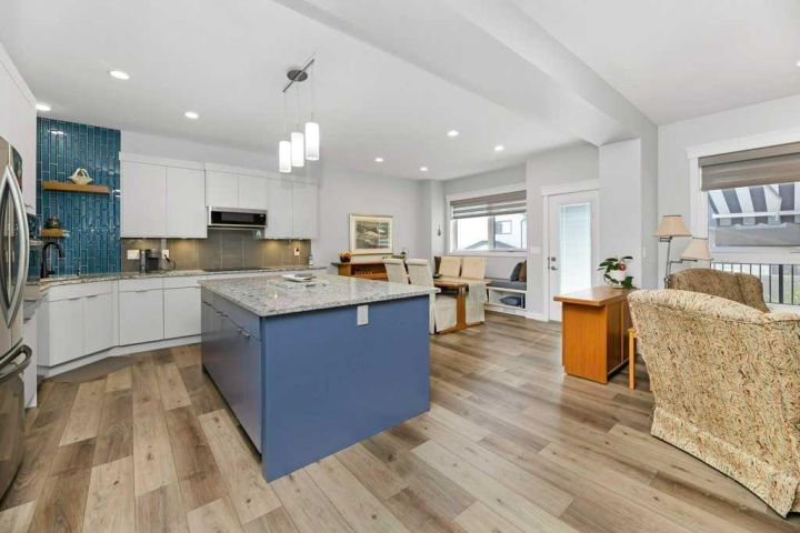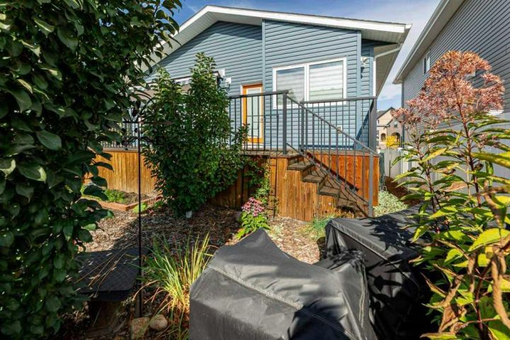 Welcome Home to this tastefully decorated modern modified Bilevel where style and practicality meet! Close to Riverbend Golf course, High School, shopping, trails!! This home was custom designed and loaded with many extra features to appreciate such as a spacious walk in guest closet at the front entrance that one wouldn't expect to see with a sweet two piece powder room off to the side. The garage is completely finished and heated, main floor offers a bright open kitchen with plenty of cupboards and workspace, UPGRADED STAINLESS APPLIANCES with a generous quartz top island to gather around. The dining nook offers a cozy cushioned bench window seat with space for extra storage. The living room provides just enough space for you and your guests to cozy up to the fireplace. Behind the living area we have a thoughtfully designed workspace for the computer or homework desk for the teen! Take a Walk upstairs to the supersized primary bedroom retreat offering a reading space, convenient laundry, a full ensuite with dual sinks and another spacious walk in closet! The basement is fully developed with another large bedroom, a full bath, cozy rec room (with a walk in storage closet in the back) can easily double as another large bedroom if required. The under stair utility room is thoughtfully designed and includes fully operational in floor heat. The maintenance free backyard offers many fruit trees, shrubs and garden boxes for the green thumb in the family. The deck has recently been freshened up with stain and the awning will provide perfect shade for the hot days of summer. This home is a pleasure to show and is a must see in this price range!! There is an annual HOA fee of $ 130 to take care of the community amenities such as entrance plaza, community gateway, roundabout feature, bridge, waterfall lookout feature, stream bed, plantings and enhanced lighting.