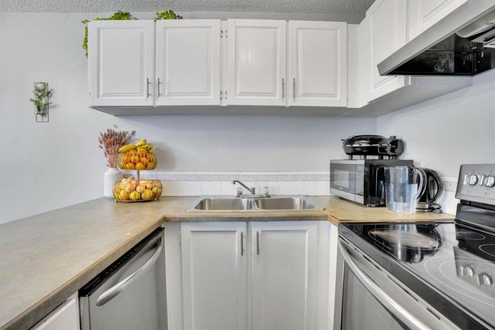 PRIME LOCATION! This spacious 808 sq. ft. 2-bedroom corner unit is nestled in the heart of vibrant Tuxedo Park, just off Centre Street—putting restaurants, cafés, grocery stores, and public transit right at your doorstep. Upgraded with stylish painted cabinets and sleek vinyl plank flooring, this home offers both comfort and contemporary charm. The U-shaped kitchen is designed for function with stainless steel appliances, ample cabinet space, and a versatile island for casual dining or extra prep. A bright and welcoming living room features large windows and access to a private north-facing balcony (balconies and railings updated in 2023), perfect for relaxing. The adjacent dining area (or home office) is highlighted by a charming circular accent window that adds character to the space. Two generous bedrooms provide the perfect retreat, including a primary suite with plenty of room for your personal design touches and a convenient cheater 4-piece ensuite. Enjoy the benefits of in-suite laundry, a separate storage unit, and underground heated parking. Condo fees conveniently include heat and water, and the building also offers a shared laundry facility for added convenience. Living here means easy access to Downtown, SAIT, U of C, major highways, and the airport. Whether you’re a first-time buyer or an investor seeking a prime location, this property is an opportunity you won’t want to miss!