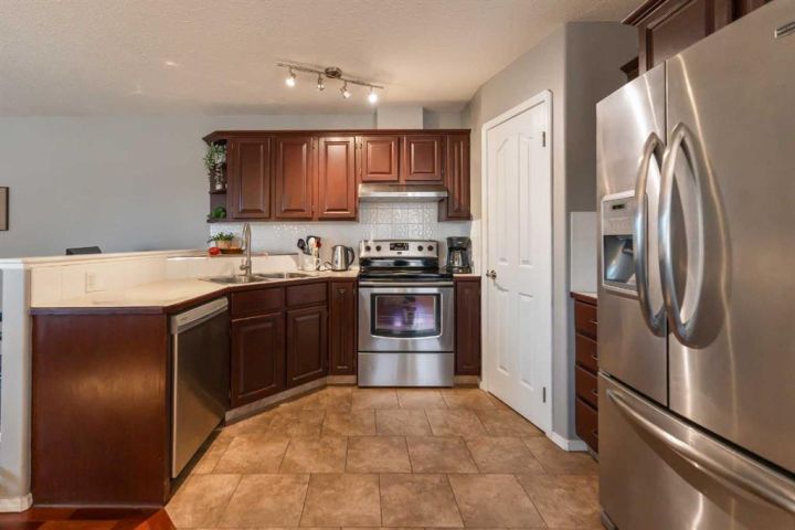 Welcome to this bright and spacious bi-level half duplex in the heart of Strathmore! Featuring 4 bedrooms, 2 full bathrooms, and a single attached garage, this home offers the perfect blend of comfort, functionality, and location. The main level features hardwood floors, an open layout ideal for family living, and a functional kitchen. The primary bedroom includes a generous walk-in closet, while a second bedroom on this level provides space for family, guests, or a home office. Step outside to the newly built back entrance and deck (completed with permits)—an excellent spot for relaxing or entertaining. The bi-level design ensures the lower level is bright and welcoming, featuring large windows, two additional bedrooms, and a 3-piece bathroom, making it a perfect extension of the living space. Backing onto a pathway and just minutes from shopping, schools, and parks, this property combines convenience with a true sense of community. With thoughtful updates and a desirable location, this home is move-in ready and waiting for its next owners!