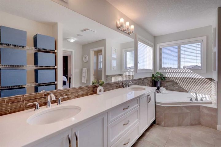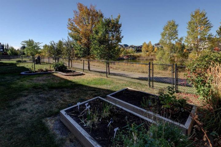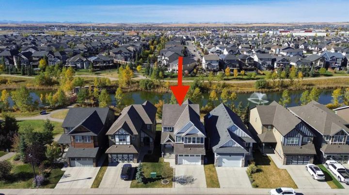 This beautifully finished, fully developed custom-built Shane Homes has something for everyone. As you enter, you’ll be greeted by soaring ceilings and rich hardwood flooring throughout the main floor. To the left, a spacious office with elegant French doors offers a perfect work-from-home setup. There is a 1/2 bath and wide entryway from the double attached garage to the right. The living room, complete with a stunning gas FIREPLACE, is ideal for relaxing after a long day or entertaining guests. The kitchen is a chef’s dream—featuring upgraded cabinetry, bright walk through pantry, GRANITE countertops, a gas countertop stove, built-in oven and microwave, and a massive central island. Just off the kitchen, step onto the serene, West facing back deck where you can take in beautifully landscaped views of the backyard, WALKING PATHS, and a peaceful POND with a fountain. There are gas BBQ hookups (lower patio as well) and stairs leading directly to the yard and path system. Upstairs, you'll find three generous secondary bedrooms, two built-in desk spaces perfect for students or workstations, and a cozy family room—ideal for movie nights or casual gatherings. The spacious primary suite is a private retreat, offering panoramic views, a luxurious 5-piece ensuite with a soaker tub, standalone shower, and a huge walk-in closet. A well-appointed laundry room and full 4-piece bathroom complete the upper level. The lower level includes a full kitchenette with an electric cooktop, refrigerator, dishwasher, and its own washer/dryer. The basement also has a large bedroom, 3-piece bathroom, a comfortable living area, and private access via sliding doors leading to a covered patio and the backyard. All of this, Hunter Douglas blinds, central vacuum, 3 zone heat and central AC, easy access to Highway 2/Calgary and more. This exceptional property truly has it all—space, style, location, and functionality.