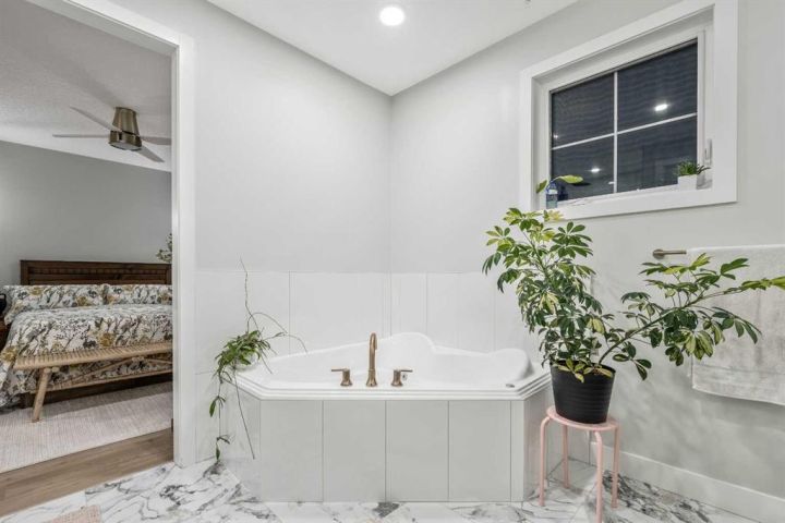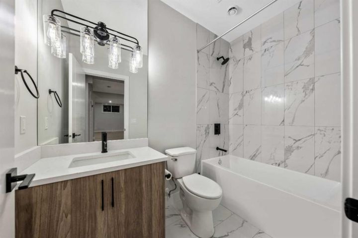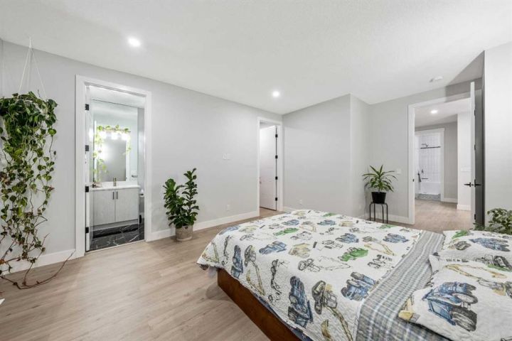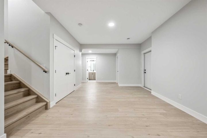 Descend to the fully finished walk-up basement, complete with a separate entry and concrete steps to the backyard. Here, you’ll find two bedrooms, a den (convertible to a third bedroom), a wet bar area and a full 4-piece bathroom. A spacious recreation room and wet-bar area make this ideal for entertaining, relaxing, or even accommodating extended family. A second future laundry station provides complete independence from the rest of the home. Backyard is fully fenced, landscaped with irrigation and is the perfect place to gather with friends and family.