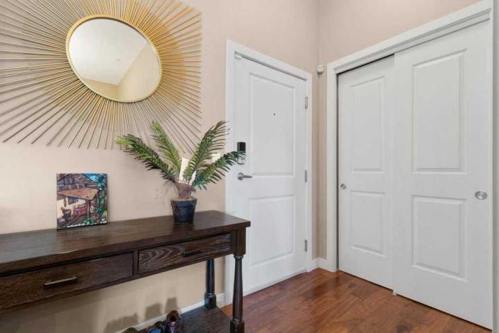 Welcome to this stunning top-floor corner unit condo in the heart of Red Deer. Perfectly located just minutes from restaurants, shopping, the hospital, and more. This 2 bedroom, 2 bathroom home combines style, space, and convenience. Enjoy sweeping views from oversized windows throughout, soaring ceilings that enhance the open feel, and a spacious private deck—ideal for relaxing or entertaining. The chef inspired kitchen features granite countertops, abundant storage, and a functional layout that flows beautifully into the living space, highlighted by rich engineered hardwood flooring. Comfort and luxury continue with air conditioning, in-unit laundry, and a thoughtfully designed floor plan that offers privacy and space between the two bedrooms. The building itself offers exceptional amenities, including a boardroom, library, exercise room, and media room—everything you need for work, wellness, and play. This beautifully upgraded condo in a premium location and would be perfect for professionals, downsizers, first time buyers or investors. Condo fee of $616.22 includes, heating, garbage/recycling, lawn care maintenance including snow removal. Amenities are; Gathering room on the main floor, Gym on the second floor, Games room on the third floor.