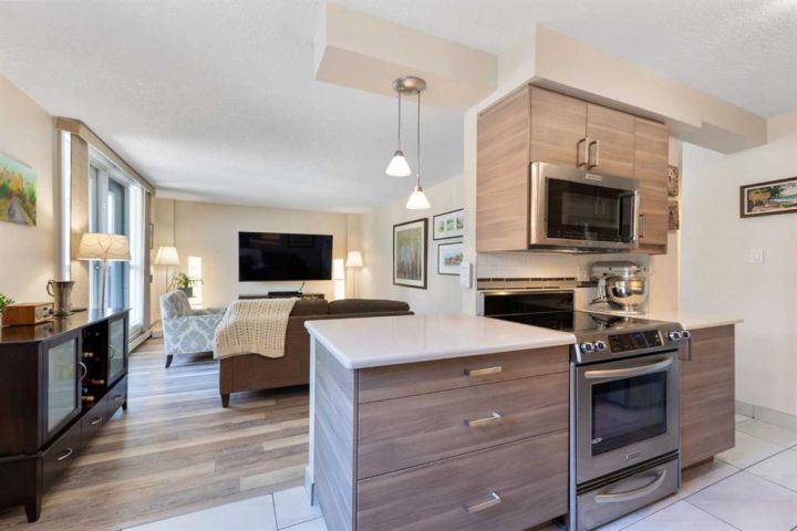 Experience modern comfort and urban convenience in this beautifully updated 2-bedroom condo at The Avenue. Recently renovated and thoughtfully maintained, this home showcases a brand-new custom kitchen with ample cabinetry, high-end vinyl flooring throughout, and a fully refreshed bathroom—offering both style and low-maintenance living. Large windows fill the space with natural light, creating a bright and inviting atmosphere. Step onto your private balcony overlooking a quiet, tree-lined street—the perfect spot for morning coffee or evening BBQs. Just steps from vibrant 17th Avenue SW, you’ll have Calgary’s best restaurants, cafés, shops, and nightlife right at your doorstep. The building offers adult living (21+), short-term rental potential, assigned parking, and separate storage for added convenience. Whether you’re a first-time buyer, busy professional, or simply seeking a lock-and-leave lifestyle, Unit 305 delivers modern updates in an unbeatable location.