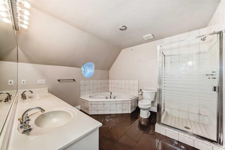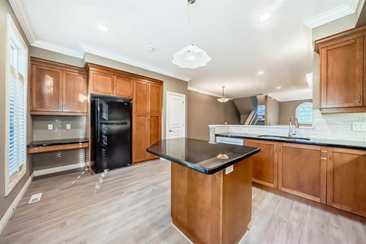 Discover the best of inner-city living at Hillandale with this charming multi-level townhome just steps from downtown offices, boutique shops, and top restaurants. The home opens onto a private inner courtyard and welcomes you with a vaulted entry and an airy, open-concept floor plan. The main level features extensive maple hardwood flooring, a cozy family room with fireplace and built-ins, and a stylish kitchen with maple cabinetry, granite countertops, island, and gas range. On the second floor, you’ll find a bright bedroom with city and courtyard views, a full bath, convenient laundry, and a large flex room with a wall of windows—perfect for an office, gym, or studio. The third floor is dedicated to the primary retreat, complete with two skylights, walk-through closet, and a spa-inspired ensuite with dual sinks, jetted tub, and separate shower. The lower level offers additional storage and direct access to the spacious double garage. Combining modern comfort with classic design, this townhome is truly a pleasure to view and an ideal opportunity to enjoy a vibrant inner-city lifestyle.