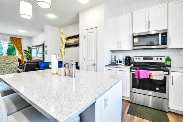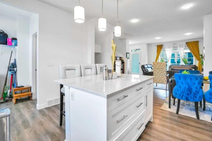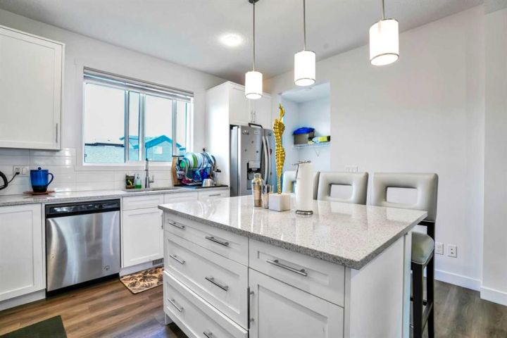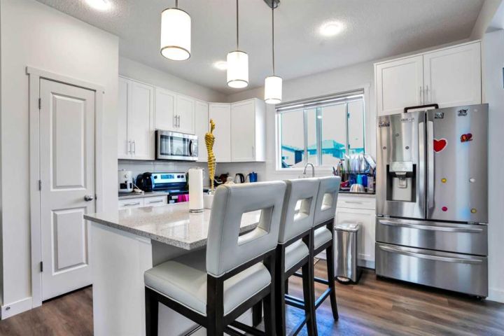 Welcome home to charming 426 Belmont Avenue SW. This stunning 4-bedroom, 3.5- bathroom townhome with NO CONDO FEES! NO HOA FEES! has it all. This very well-maintained home has a great curb appeal and exhibits pride of ownership at all angles. From the moment you step through the high-end railings of the front porch and through the front door you will be amazed and greeted by a bright and open concept main floor comprising of a living area/great room that flows seamlessly into a beautiful and spacious kitchen loaded with stainless-steel appliances, quartz counter tops and lots of cabinetry space. The main floor features beautiful luxury vinyl planks flooring, large windows allowing for tons of natural light, a good size dining/breakfast nook and a half bath. The spacious living room overlooks a good size front porch that is ideal for entertainment/relaxation or just spending quality time with friends or family. The upper level features a large primary bedroom with a 3-piece ensuite, a good size walk-in closet, two other good size secondary bedrooms, a laundry room and a 4-piece bath that completes this level. The lower level (basement) is professionally finished by the builder with a large bedroom, a 4-piece bath and a huge recreational or family room. Situated in the vibrant and family friendly community of Belmont, this home is ideally located close to the 118,000 Sqft Fieldhouse for recreation (currently under construction) and also a 10,000 Sqft Library (under construction), major roads (Macleod Trail and Stoney Trail), ponds, parks, pathways, playgrounds, shopping, transit and much more. More complements to his home are the fully fenced / landscaped backyard and the large double garage with back-alley access. DON’T WAIT on this one!! Check out the 3D tour, call your favourite realtor today and book a viewing.