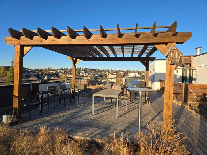 This sophisticated two-bedroom, two-bathroom condo is situated in the prestigious Marda Loop community of South Calgary, within the exclusive Victory & Venture complex. Upon entry, residents are welcomed by a spacious foyer and ample closet space. The modern kitchen features high-quality appliances, quartz countertops, generous cabinetry, a gas cooktop, and a sizable island. Both bedrooms provide substantial space and storage, ideal for use as a home office or guest accommodation. The living room offers abundant natural light, a fireplace, and access to a large private patio—well-suited for relaxation and hosting gatherings. Residents also enjoy access to a rooftop patio equipped with BBQ amenities and expansive city views. The property is conveniently located close to dining, retail, parks, public transportation, and additional amenities.