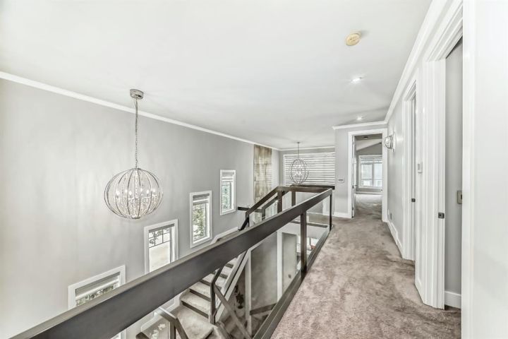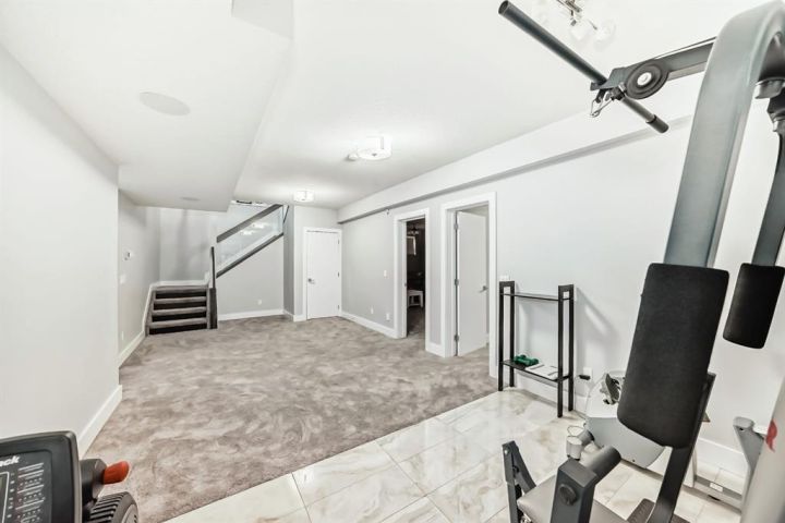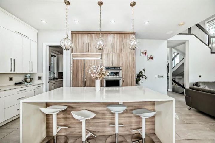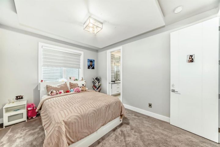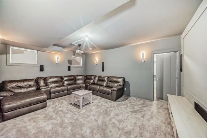 Custom-built 2 storey in Aurora with 3,800 sq ft of total living space, 5 bedrooms, 4.5 baths, and a triple tandem heated garage. The open main floor showcases soaring 20’ ceilings, a bright living room with gas fireplace, a modern kitchen with quartz counters, stainless steel appliances, and a dedicated spice kitchen with separate entry. Upstairs, the primary suite offers vaulted ceilings, a spa-inspired 5 pc ensuite with steam shower, and walk-in closet, along with 3 additional bedrooms featuring walk-ins, Jack & Jill bath, full bath, and a large laundry room. The fully finished basement features a theatre room, bedroom, 3-piece bath, ample storage, and a separate side entrance for added flexibility.