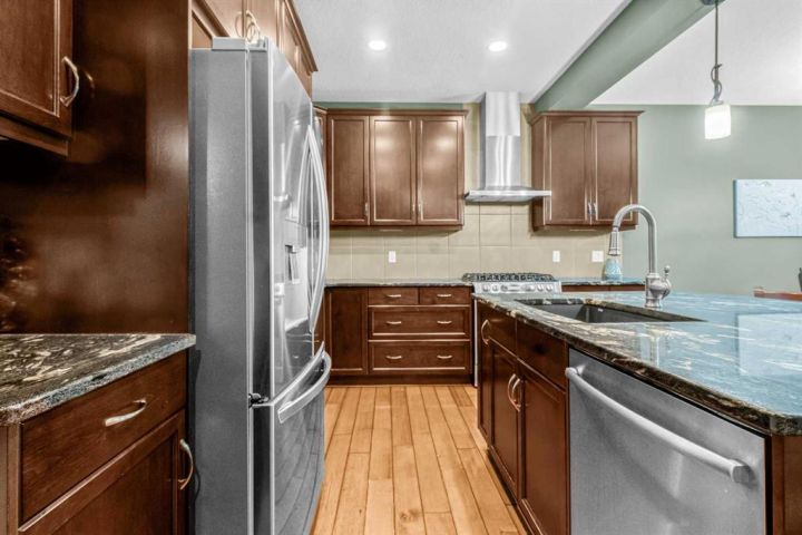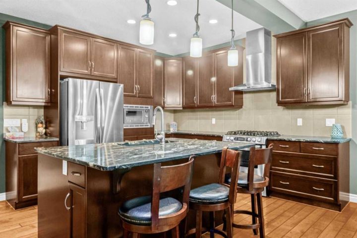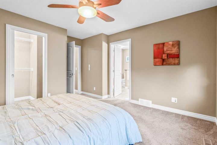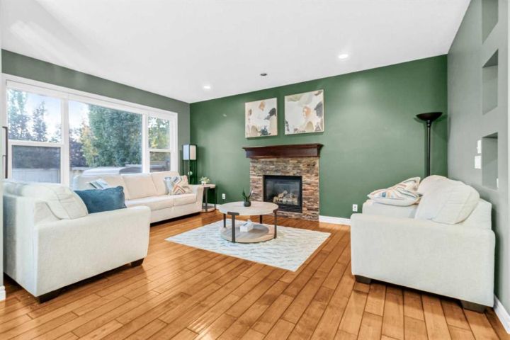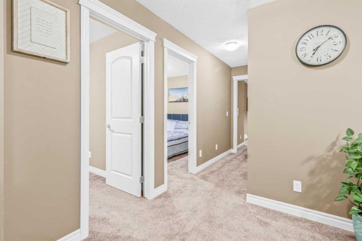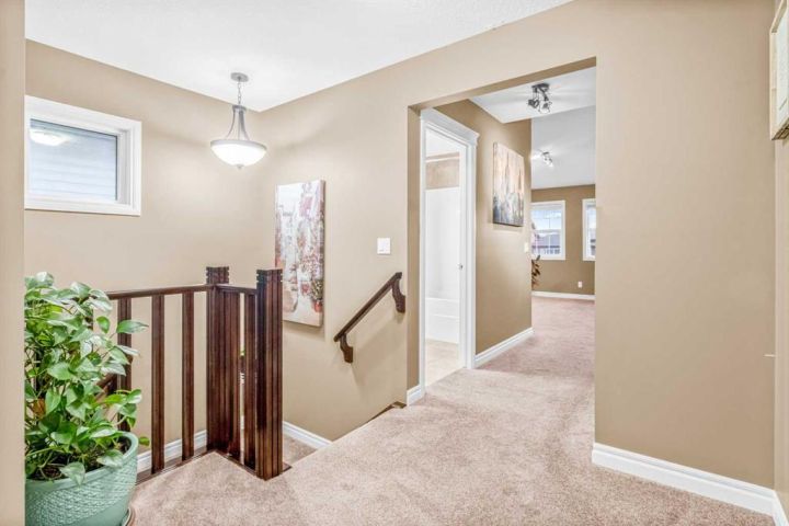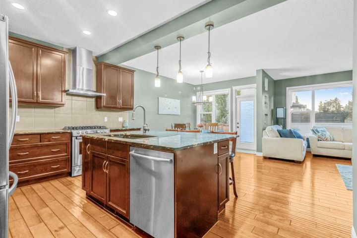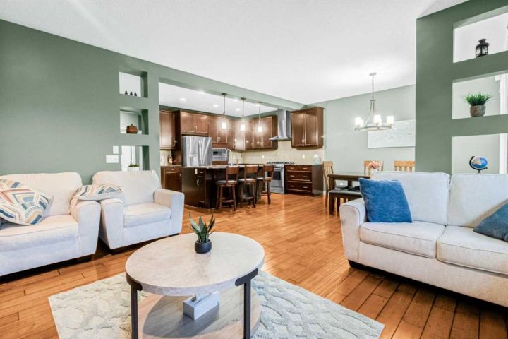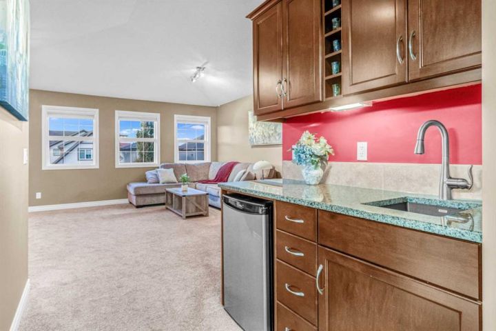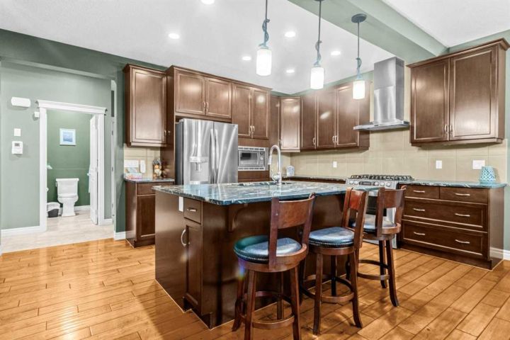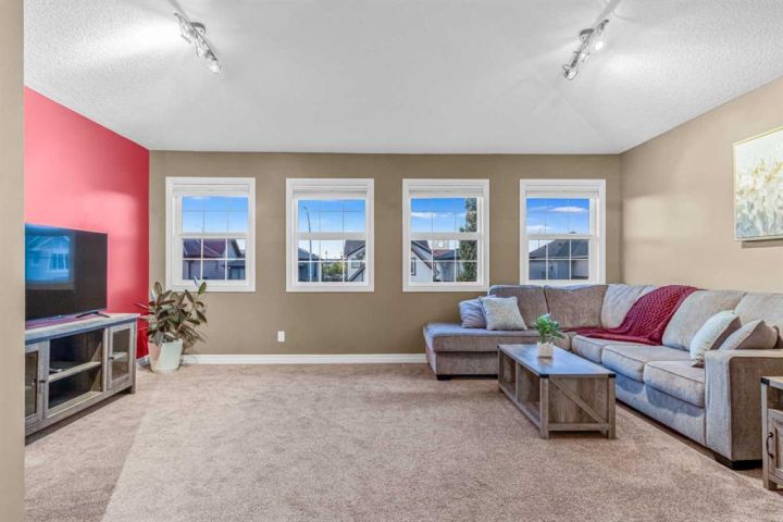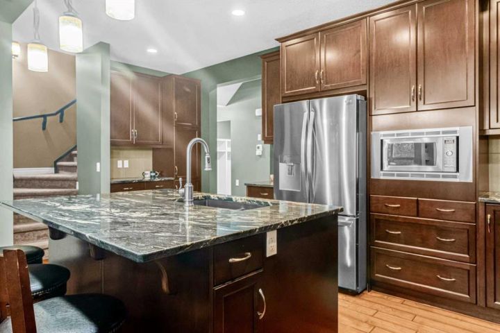 ** OPEN HOUSE SATURDAY AND SUNDAY, OCTOBER 4 AND 5TH, FROM 2 PM TO 4 PM**A UNIQUE GEM! Welcome to luxury living in the heart of Hillcrest, one of Airdrie's most sought-after communities. As you step into this stunning 3-bedroom home, you are greeted by a grand foyer that opens onto a breathtaking open-concept main floor. The kitchen is a chef's dream! Designed to impress with elegant cabinetry, granite countertops, designer lighting, and premium appliances, including a built-in microwave and gas stove, all accented by a huge island with an eating bar. The ultimate culinary space for family bonding or stylish hosting. It effortlessly transitions into an open-concept layout that extends to the generous dining and living spaces, perfect for entertaining. Throughout the main floor, engineered hardwood flooring enhances the sense of flow and style. The dining room and living room feature huge windows, allowing for loads of natural light and a 9-foot ceiling throughout the main floor. The rear living room features a stacked stone-finished gas fireplace with a classic mantle, while the adjoining dining area boasts a patio door that opens to the sunny, south-facing backyard. Enjoy the low-maintenance backyard oasis featuring a custom concrete patio and lush artificial grass, both in front and back of the home – perfect for relaxing or entertaining. A smart walk-around layout connects seamlessly to the mudroom, convenient half bath, and attached garage. Upstairs, you will find a spacious bonus room with a vaulted ceiling and a wet bar, ideal for a media lounge or children's retreat. Three bedrooms, with the primary bedroom having a walk-in closet and a lavish spa-like five-piece ensuite bathroom. The laundry is conveniently located on the upper level, just beside the bedrooms. The unfinished basement comes with standard windows, complemented by roughed-in plumbing, and presents endless opportunities for your personalized touches. The home also offers additional upgrades, including central air conditioning and a water softener. This smoke-free, pet-free move-in-ready home is situated just steps away from great schools, scenic walking pathways, shopping centers, restaurants, and playgrounds, offering the perfect balance of community, comfort, and accessibility. With quick access to Deerfoot Trail, CrossIron Mills, Amazon shipping depot, and The Airport.  You’ll be well-connected to go anywhere you want to explore. Schedule your viewing today!