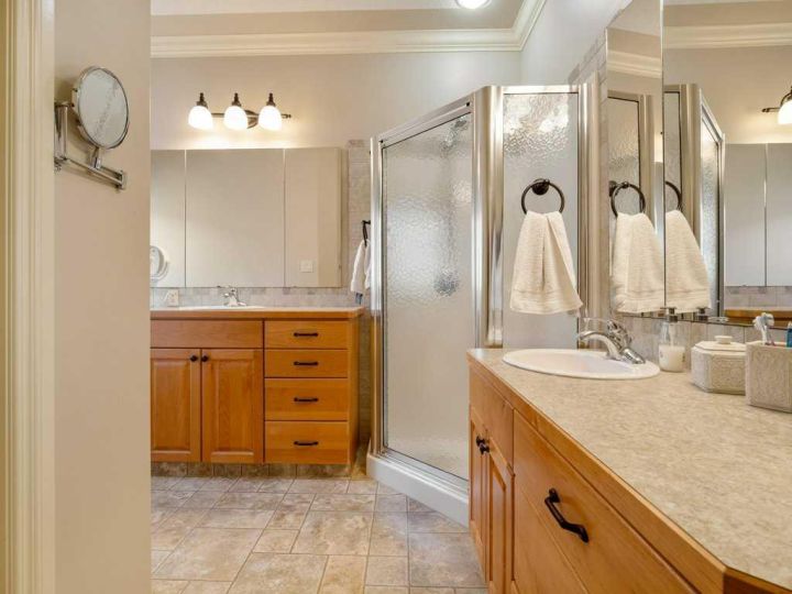 Wonderfully crafted walk-out bungalow overlooking BOTH Fairmont Lakes! This one owner home was designed for this specific lot and location, and is now being offered for sale for the first time ever. Boasting sweeping views of gorgeous lake landscapes, yet still providing a real sense of seclusion and privacy. The open and airy kitchen/great room layout, with heightened ceilings, definitely makes an impact upon entering. Whether you are dining with friends, crushing it in your home office, or winding down the night in your master suite...that ever-present panoramic view will surely inspire and rejuvenate. A massive family room down with a full walk-out feature adds to the entertaining capacity, and would make an awesome home fitness area. But then again the somewhat separated 2 bedrooms, full bath, and computer nook on the other end of the lower level may just cater to your second living space needs too. Other highlights include onsite finished hardwood floors, sleek maple cabinetry, built in appliances, 2 gas fireplaces, main floor laundry area with soaker sink, 12 and a half foot high garage ceiling, and a fantastic hobby room/workshop that is actually vented externally. The shed has power to it, and there is gas and power plumbed into the garage for a future heater. Now is the time to act on this gem of a property and be in before Christmas!