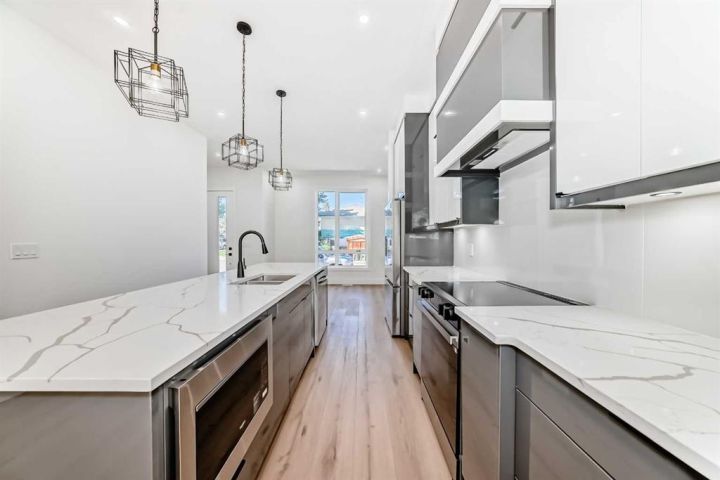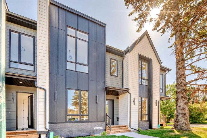 Presenting an excellent opportunity to expand your investment portfolio close to the U of C! This BRAND NEW 8-plex is 100% complete and ready to rent! Located on a large 55x120 corner lot mere minutes from the University of Calgary and University C-Train station. The upper 2 storey units offer 1440 sq ft with 10' main floor ceilings, 9' and vaulted 2nd floor, a Primary bedroom with a 4 piece ensuite and walk-in closet, 2 more bedrooms, 4pc bathroom, powder room, living room, kitchen, dining room and laundry. Living room has built-in features, front and rear entrance and single garage parking. Lower units are 587 sq ft with 9' ceilings, 1 bedroom plus a flex room/den, living room, kitchen and laundry as well. Interiors will also have stainless steel appliances, QUARTZ counters and LVP floors with tiled bathrooms. The exterior is well presented with Hardie siding and stone accents, sidewalks front/rear, irrigation, window coverings, and nicely treed too! 4 single garages and 2 large indoor storage units complete this package. This build is eligible for CMHC Select financing, seperately titled and metered. Take advantage of Calgary's rental market in one of the most desireable locations with C-Train access, minutes to the University of Calgary, Foothills Hospital and 10 minutes to downtown.