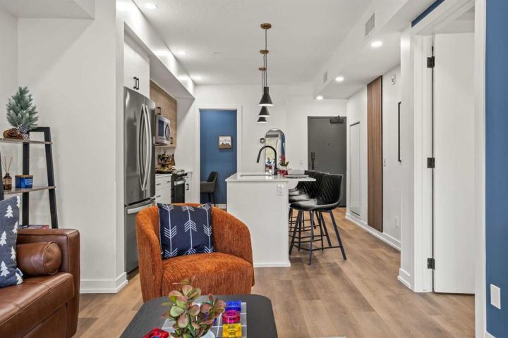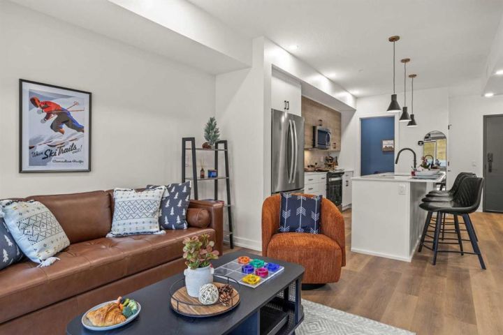 This executive 1-bedroom + office, 2-bathroom ground-level unit at Golden Ridge is one of Canmore’s newest luxury developments. Thoughtfully designed with premium finishes, this unit offers northeastern mountain views, a dedicated office space, and an open-concept layout that blends elegance with functionality, and a good-sized walk out patio to relax after a day in the sun. Guests will enjoy exclusive access to shared rooftop hot tubs with stunning northeastern mountain views along with a relaxing sauna, providing the ultimate alpine retreat. This unit comes fully furnished and turn-key ready, making it an incredible opportunity to capture Canmore's lucrative short term rental market.