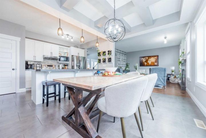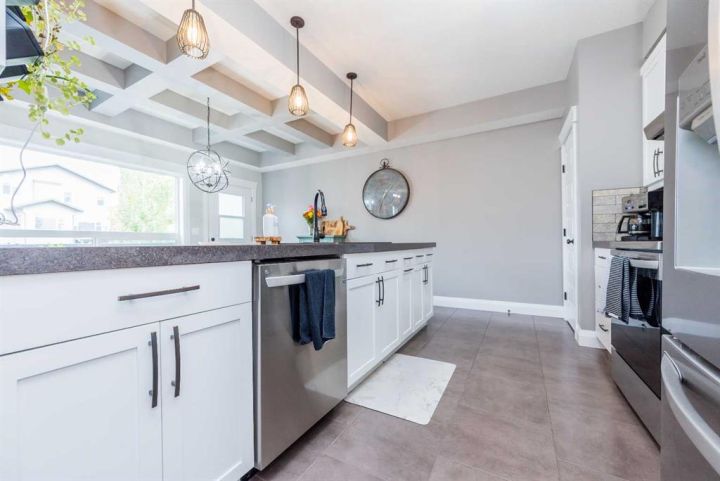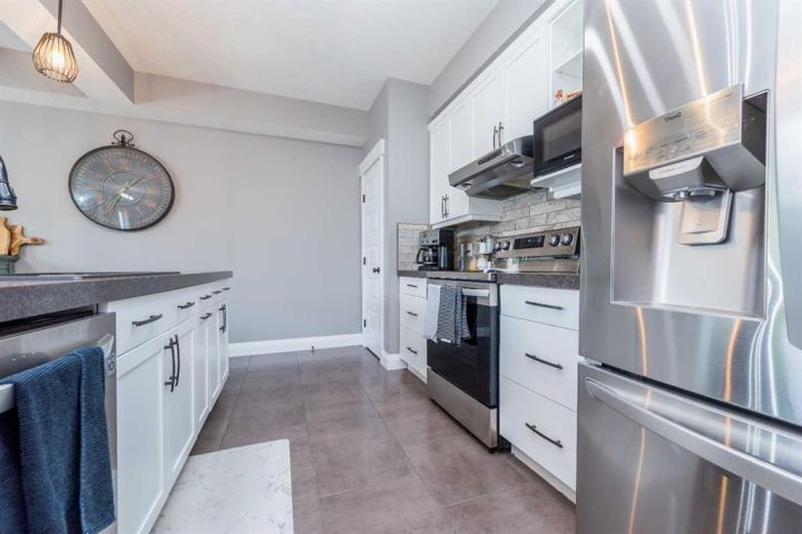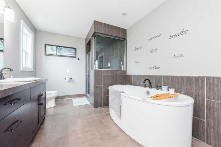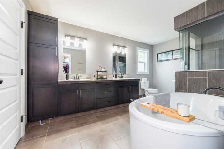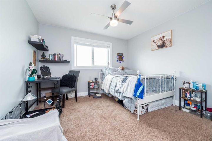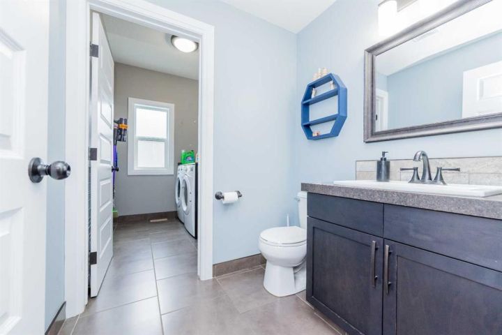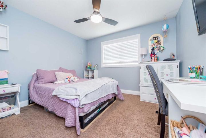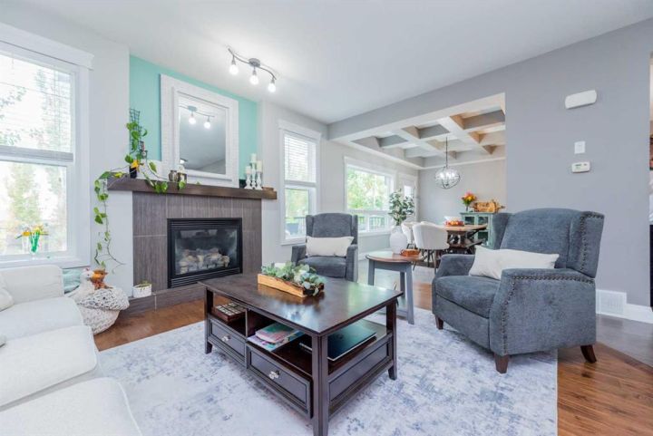 This beautiful home is filled with thoughtful upgrades and modern finishes inside and out. The exterior showcases stunning landscaping with decorative curbing, solar panels for energy efficiency, and a low-maintenance back deck with aluminum railings—perfect for enjoying the outdoors without the upkeep. Inside, the open floor plan is bright and welcoming, featuring engineered hardwood floors and a cozy gas fireplace in the living room. The kitchen is designed for both style and functionality, offering an island with eating bar, a pantry, and a spacious dining area that opens directly onto the back deck. Just off the entry, you’ll find a convenient half bath paired with a laundry room complete with built-in shelving. Upstairs, the luxurious primary suite is a true retreat with a walk-in closet and an impressive ensuite featuring a free-standing tub, his-and-hers sinks, and a beautifully tiled shower. Two additional generously sized bedrooms and a full bathroom complete the upper level. The fully finished basement provides even more living space, including a family room, fourth bedroom, additional bathroom, dedicated office, and a storage room. The attached garage is insulated and drywalled, adding comfort and value. This home offers the perfect combination of elegance, practicality, and efficiency—ideal for families looking for space and style.