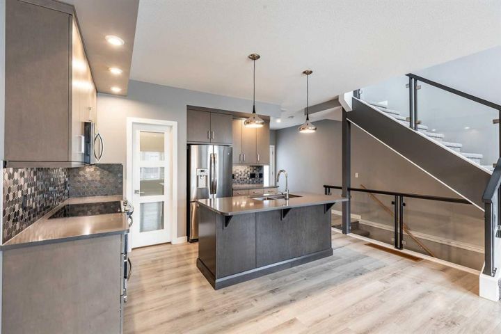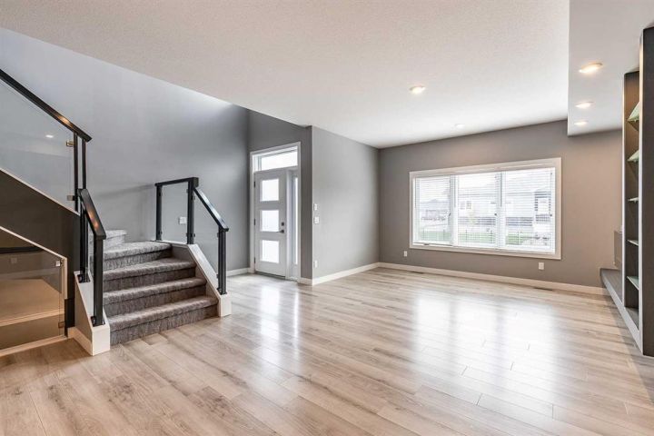 Welcome to 14 Somerset Road SE – a stylish, modern home built by Brost that blends high-end finishes with thoughtful design. Step inside to an open-concept main floor, where a striking glass-and-metal staircase sets the tone. The living room feels warm and inviting with a sleek tiled gas fireplace, while the kitchen and dining area offer plenty of space for cooking and gathering. You’ll love the gorgeous cabinetry, corner pantry, and stunning quartz countertops. Off the back entry, you’ll find a convenient mudroom with built-in bench, a 2-piece powder room, and access to the heated attached garage. Upstairs, natural light pours in through oversized windows, creating a bright and airy feel. Three generously sized bedrooms and a full 4-piece bathroom make this level perfect for families. The primary suite is a true retreat, featuring a statement tiled accent wall, walk-in closet, and spa-like 3-piece ensuite. A discreet upper laundry room adds convenience to daily living. This home is smart and functional, featuring a Google Nest system, central vacuum, and wiring for Telus PureFibre for seamless connectivity. Outdoors, you’ll enjoy a landscaped backyard with maintenance-free fencing and underground sprinklers to keep things lush with minimal effort. The basement is ready for your personal touch, with an excellent layout that makes future finishing simple. Move-in ready and designed for modern living, this home offers comfort, style, and all the extras you’ve been looking for.