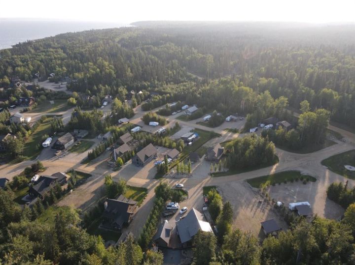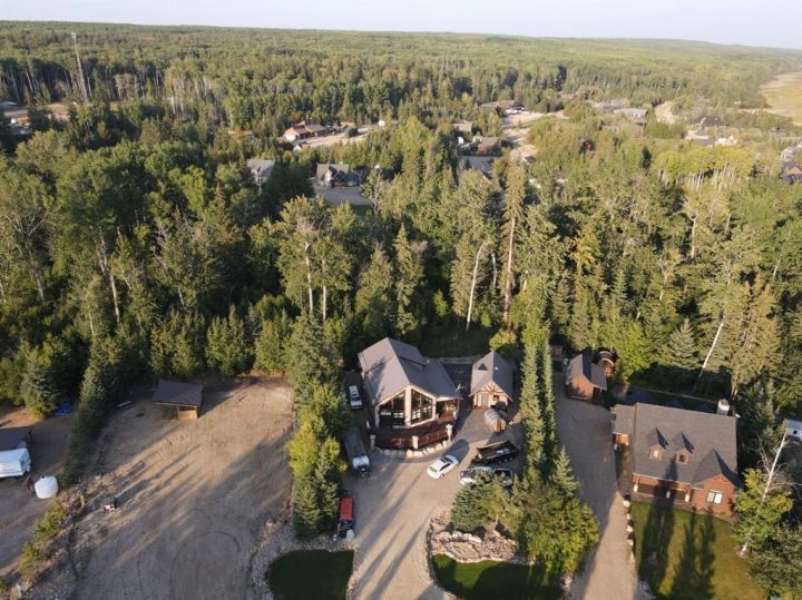Embodying a harmony of rustic charm and modern elegance, this distinctive 2140 square foot A-frame cabin is situated in the coveted Hilliards Bay Estates on the north shore of Lesser Slave Lake. The home's striking architectural lines are gracefully anchored by a stone facade and metal roof, leading to a private backyard that meets the gentle flow of Moneris Creek. The property is meticulously planned for hosting, featuring two dedicated, full-service 30-amp RV spots with complete hookups, ensuring every guest enjoys comfort and convenience. Inside, an open-concept living space is defined by soaring cedar ceilings and beams, where the organic warmth of wood is beautifully contrasted by the crisp, modern appeal of a white quartz kitchen, stainless steel accents, and a clean subway tile backsplash. This refined balance extends to the heated, covered deck—a seamless outdoor room featuring a cedar ceiling, a gas fireplace, and a minimalist bar, crafted for both tranquil relaxation and elegant entertaining. Further enhancing the property's appeal is a detached guest house, providing a sleek and versatile space with an open-air ambiance. The entire estate benefits from the premier amenities of Hilliards Bay, including direct marina access, positioning this property not just as a retreat, but as a sophisticated sanctuary where minimalist design, natural grandeur, and unparalleled hospitality exist in perfect balance. Lot 96: Hilliards Bay Estates Map. Call today to book your private viewing.
