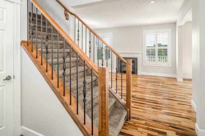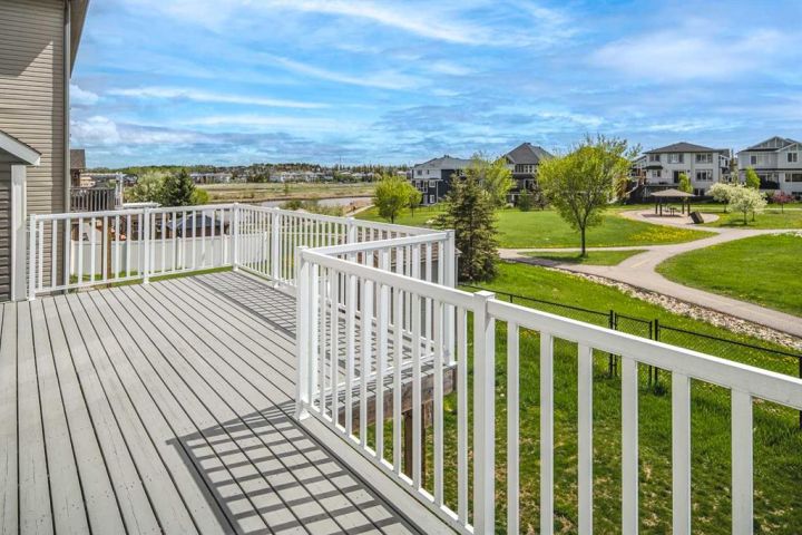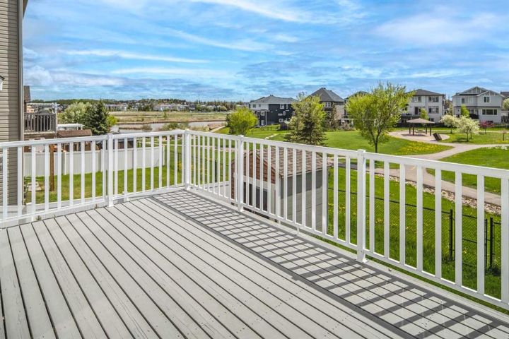 Huge price reduction with quick possession! This fully finished two-storey walkout home is located in the quiet and scenic community of Lakepointe in Chestermere, offering breathtaking south-facing views of the lake, pond, and surrounding natural reserve with direct access to walking paths and parks. Inside, the main level impresses with 9’ knockdown ceilings, rich multi-tone hardwood flooring, and a bright front flex room perfect for a home office or playroom. The open-concept living area features a cozy gas fireplace and flows into the dining space and gourmet kitchen, complete with granite countertops, stainless steel appliances, soft-close cabinetry, a large island with seating, and a walk-in pantry. French doors lead to an oversized deck with a gas hookup—ideal for outdoor entertaining. Upstairs offers a comfortable bonus room, two generous bedrooms, and a spacious primary suite with lake views, his-and-hers closets, and a 5-piece ensuite featuring a jetted tub and tiled shower. The walkout basement adds even more living space with a family room, stacked-stone fireplace, full bathroom, and room for future development. Additional upgrades include air conditioning, reverse osmosis, central vacuum, water softener, garburator, and a double attached garage. This home blends comfort, style, and an unbeatable location—perfect for family living.