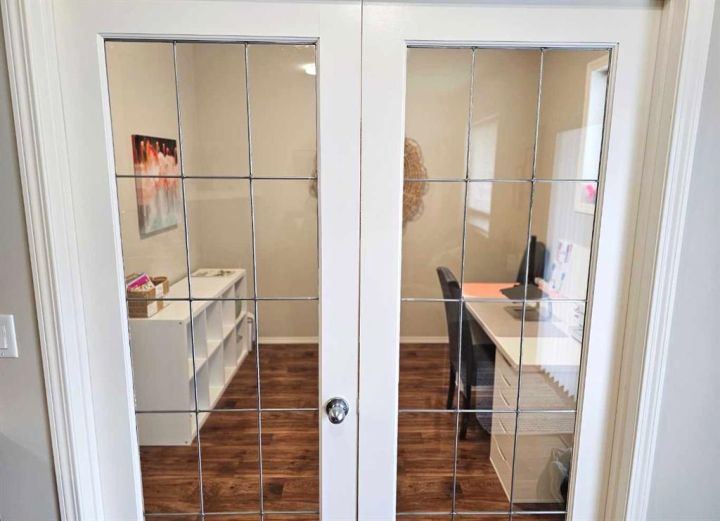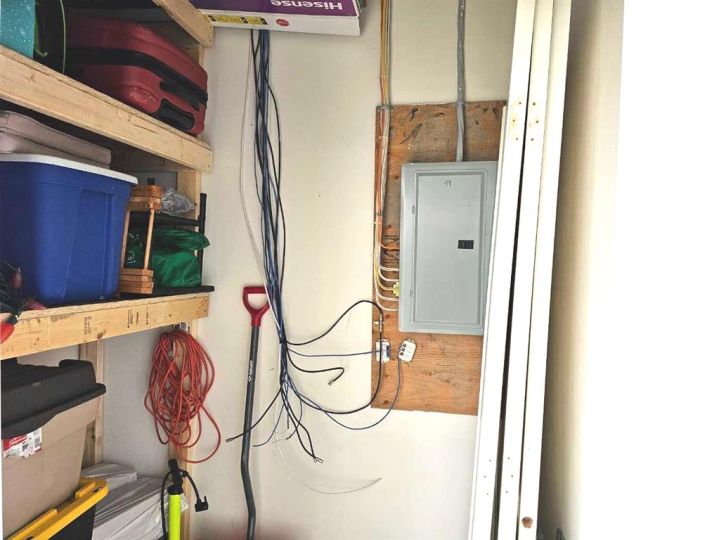 Window coverings, tv wall mount, extra interior doors located in the storage closet